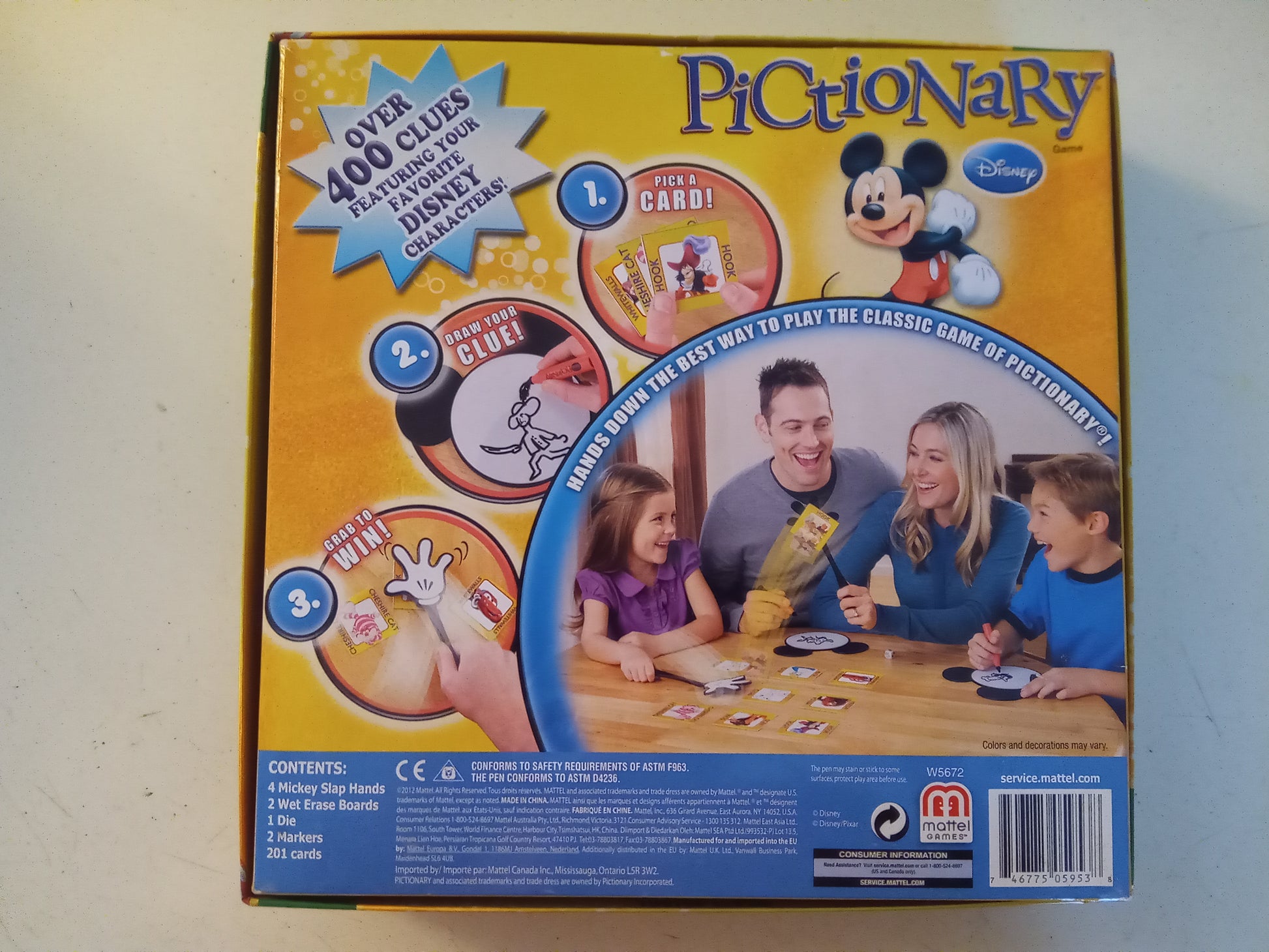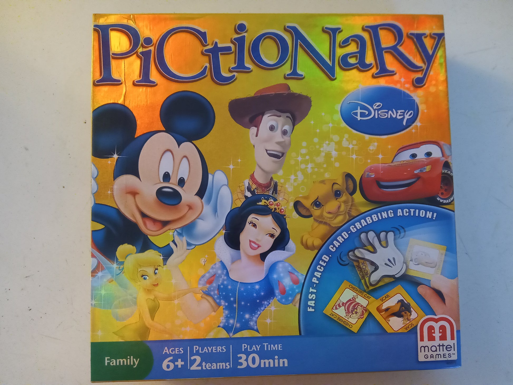 This Disney Pictionary game is complete. It is a fast-paced card-grabbing action game.