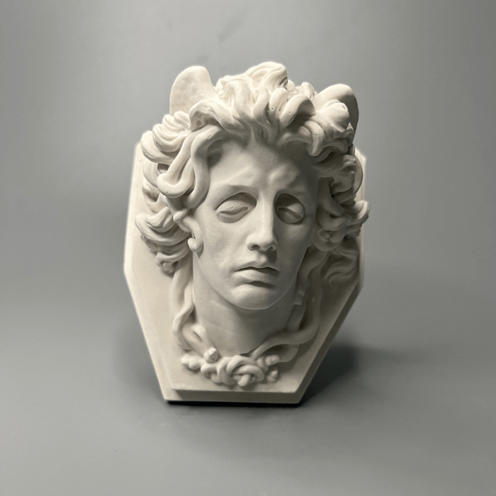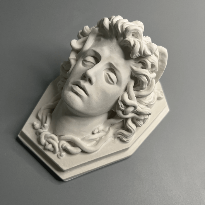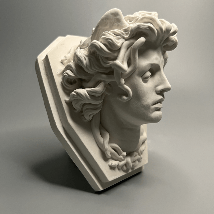 Experience the captivating duality within the Medusa Serenity Sculpture – an embodiment of serene introspection through closed eyes, juxtaposed with an imposing aura exuding resolute and formidable strength. Whether as a guardian emblem or a portrayal of inner power, this sculpture of the Medusa head boldly asserts a distinctive flair in both personality and style. Immerse yourself in the mystique and allure of Greek mythology's iconic figure, as it takes center stage in your decor, weaving an enchanting narrative that breathes life into your space and reveals beauty in its most unexpected forms.