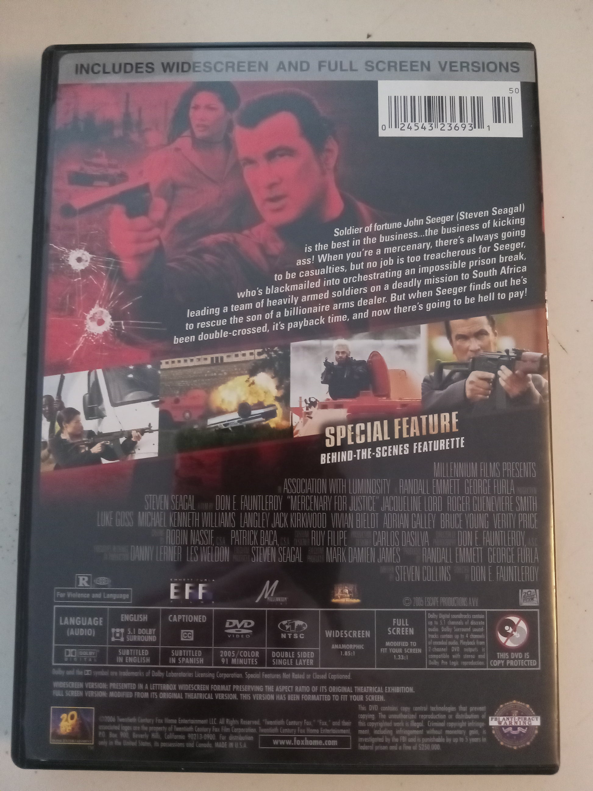 Mercenary For Justice, DVD Movie, Steven Seagal Fullscreen, Widescreen, Rated R, USED