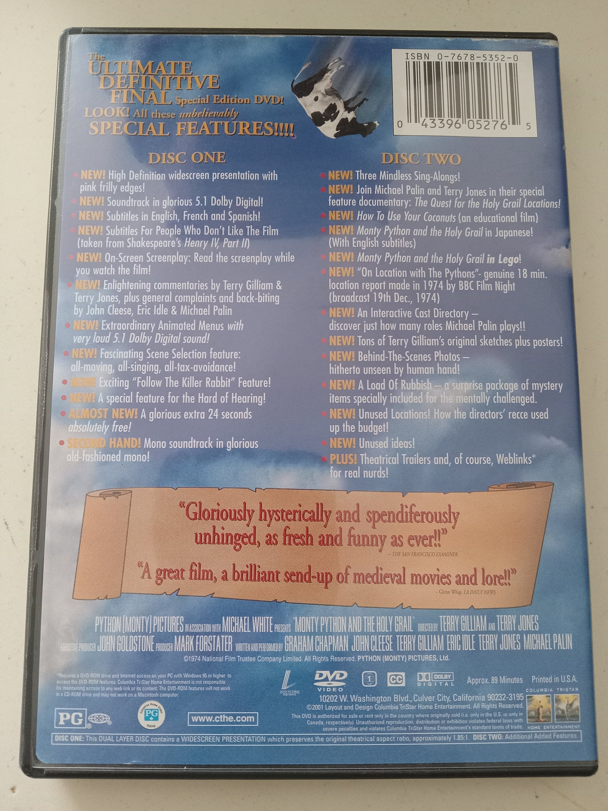 Monty Python And The Holy Grail, 2 Discs Special Ed. DVD Movie, Widescreen, Rated PG, USED