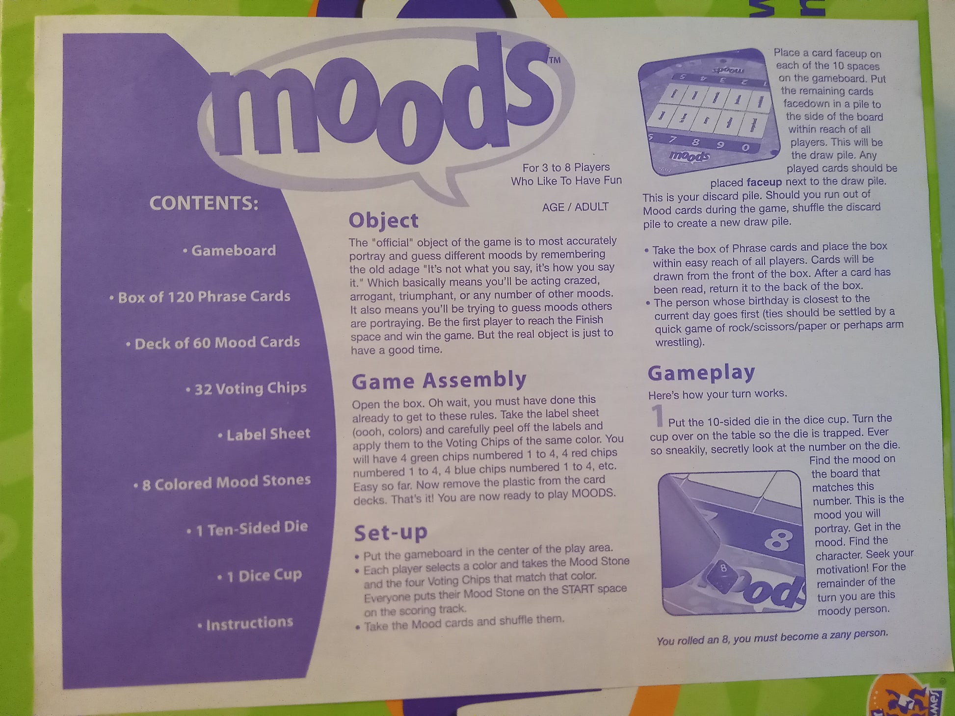 Game Moods Family Interacting Acting Cards Board Game, AMB, USED
