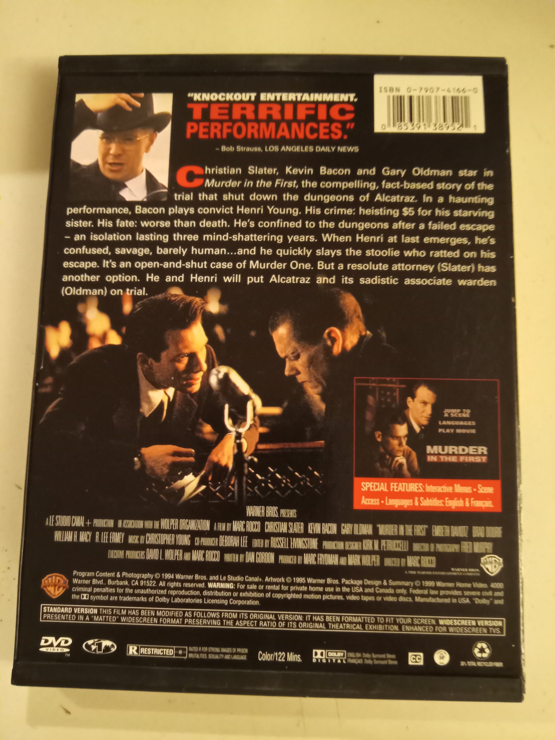 Murder In The First, DVD Movie, Kevin Bacon Widescreen, Rated R, USED