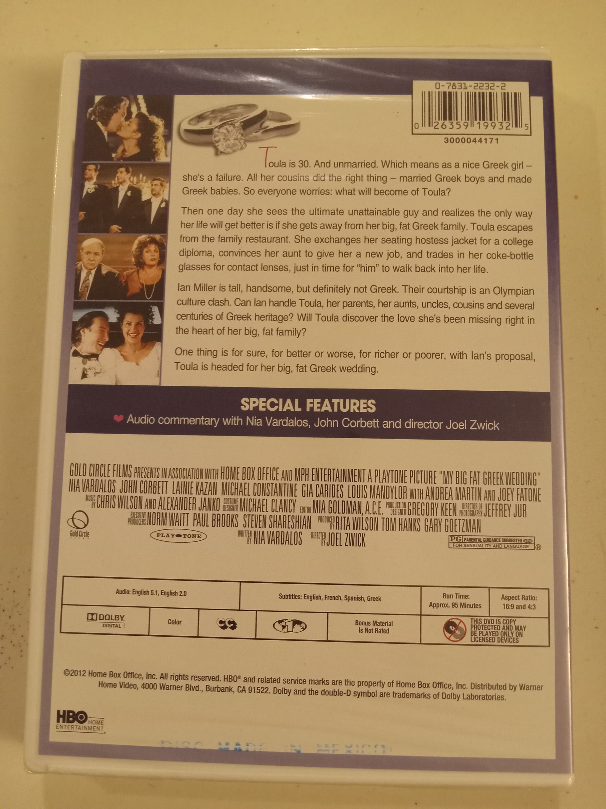 My Big Fat Greek Wedding, DVD Movie, Nia Vardalos Fullscreen & Widescreen, Rated PG, NEW or USED.