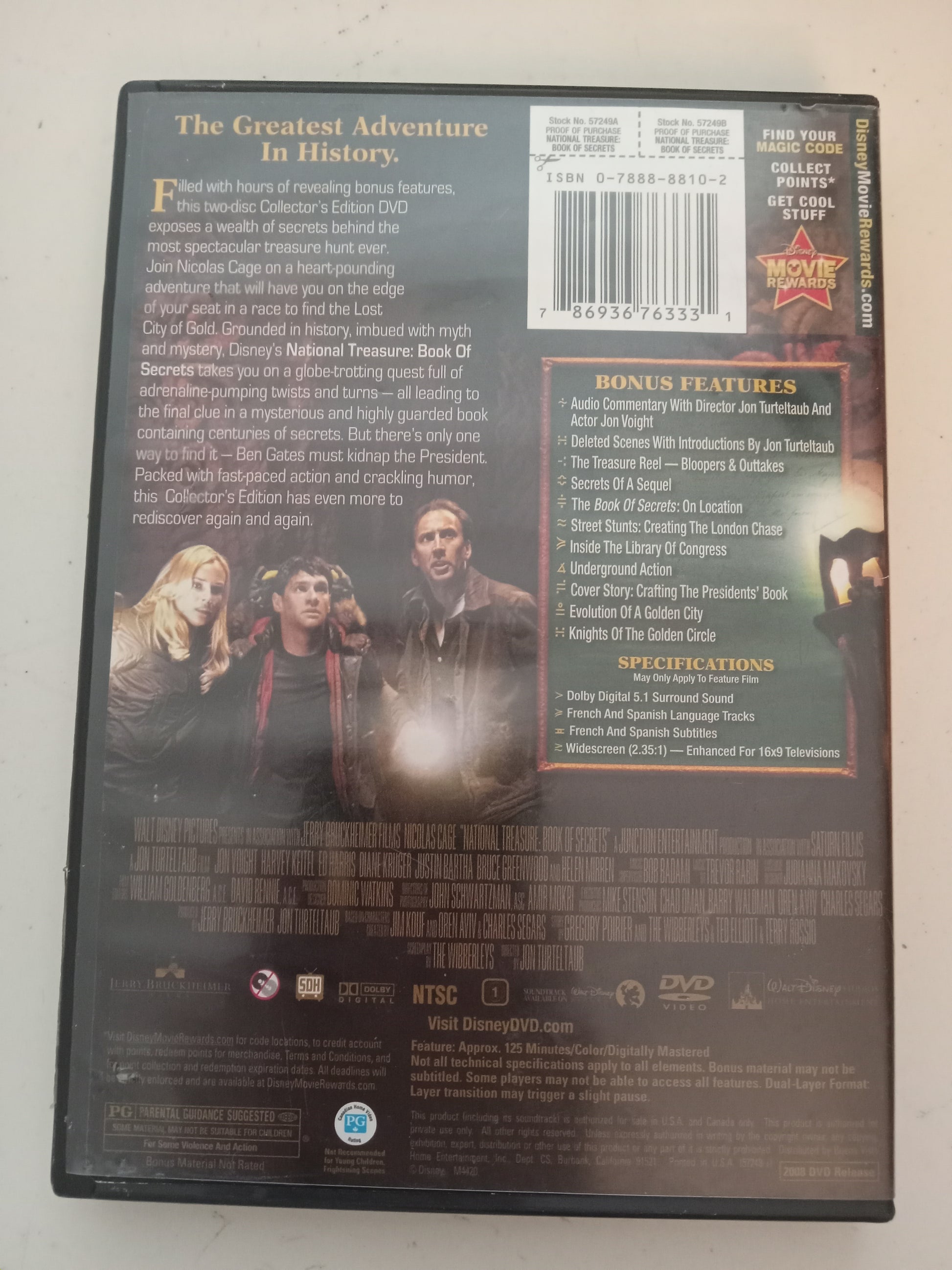 National Treasure 2 Book Of Secrets, DVD Movie, Nicholas Cage Widescreen, 2 Disc Special Edition or 1 Disc standard edition, Rated PG, USED