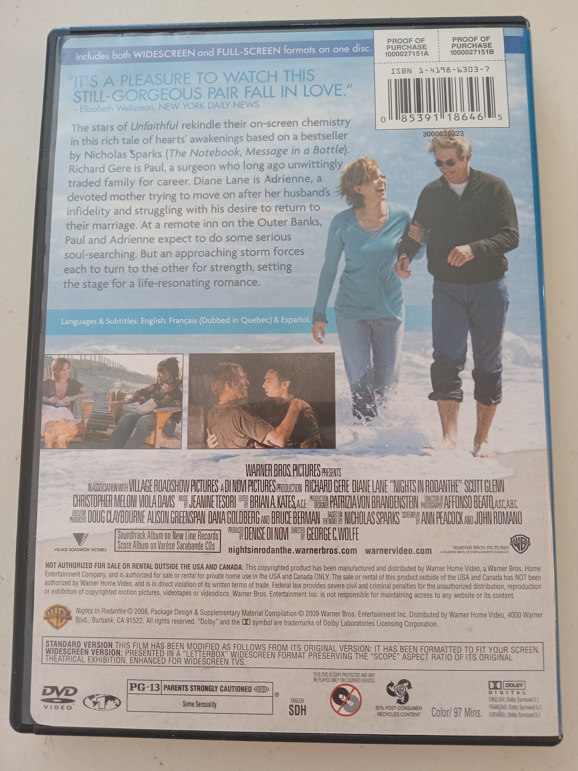 Nights In Rodanthe, it's never too late for a second chance. DVD Movie, Richard Gere Widescreen, Rated PG-13, USED