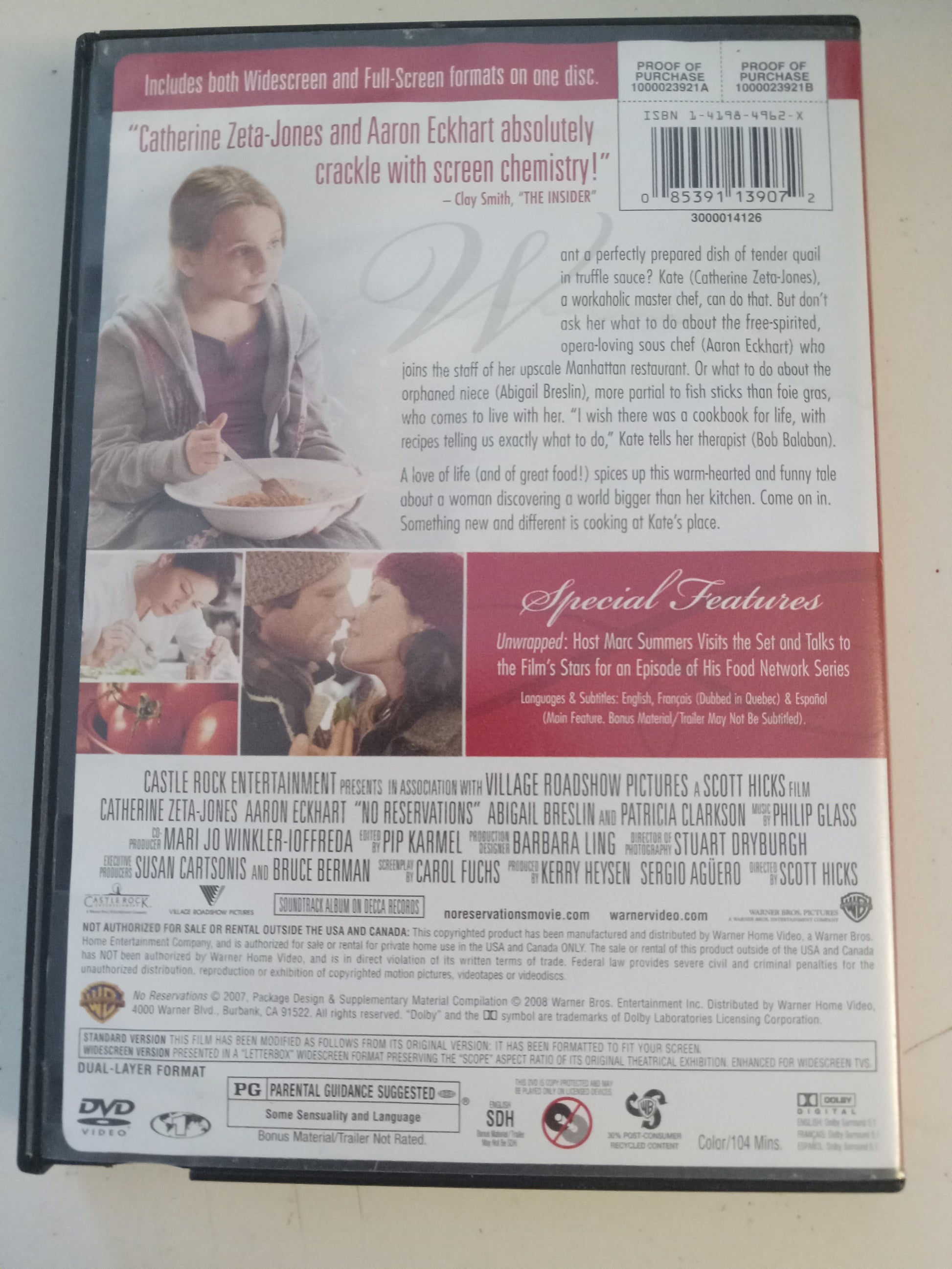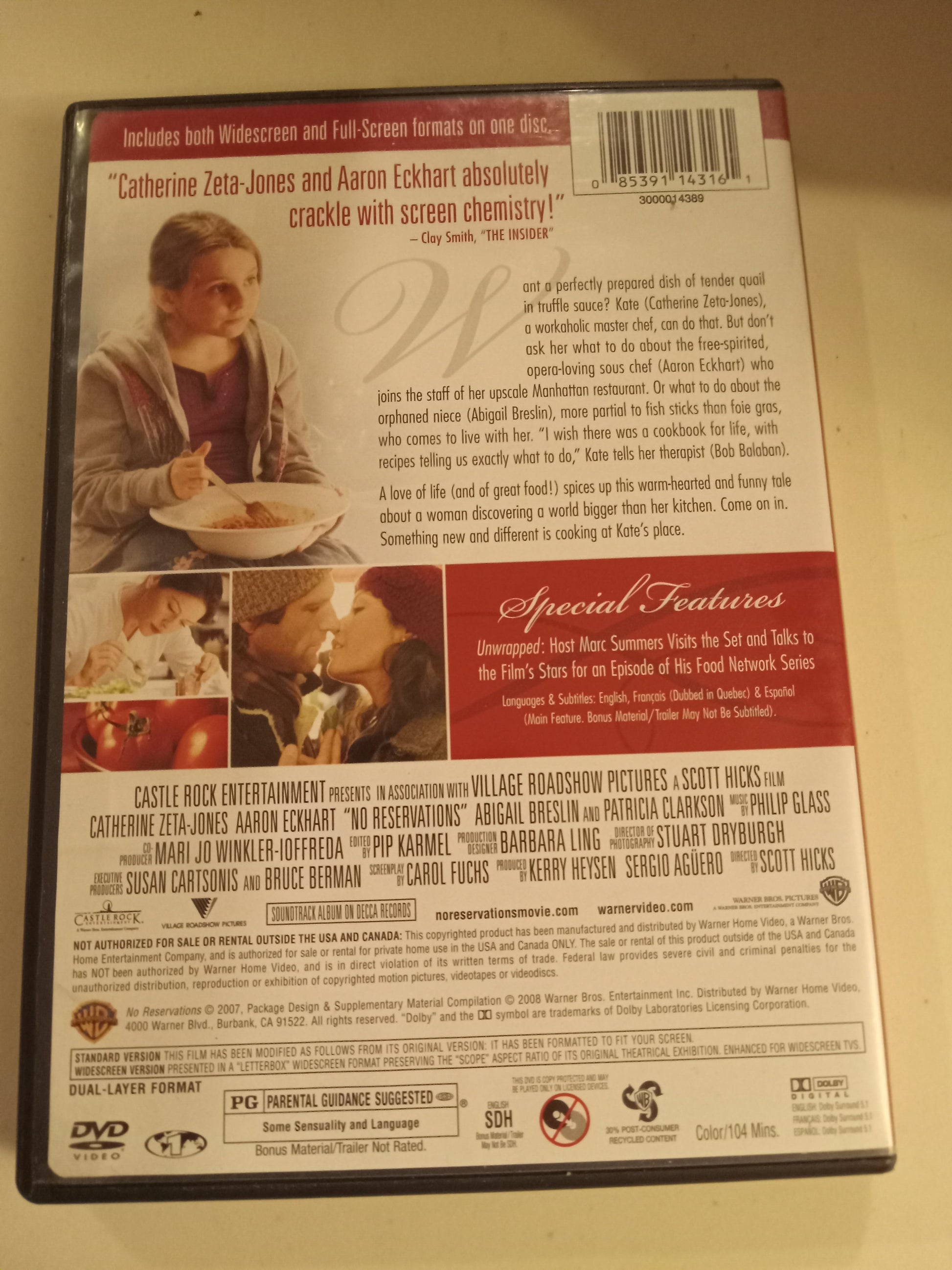 No Reservations, DVD Movie, Aaron Eckhart Widescreen, Rated PG, USED