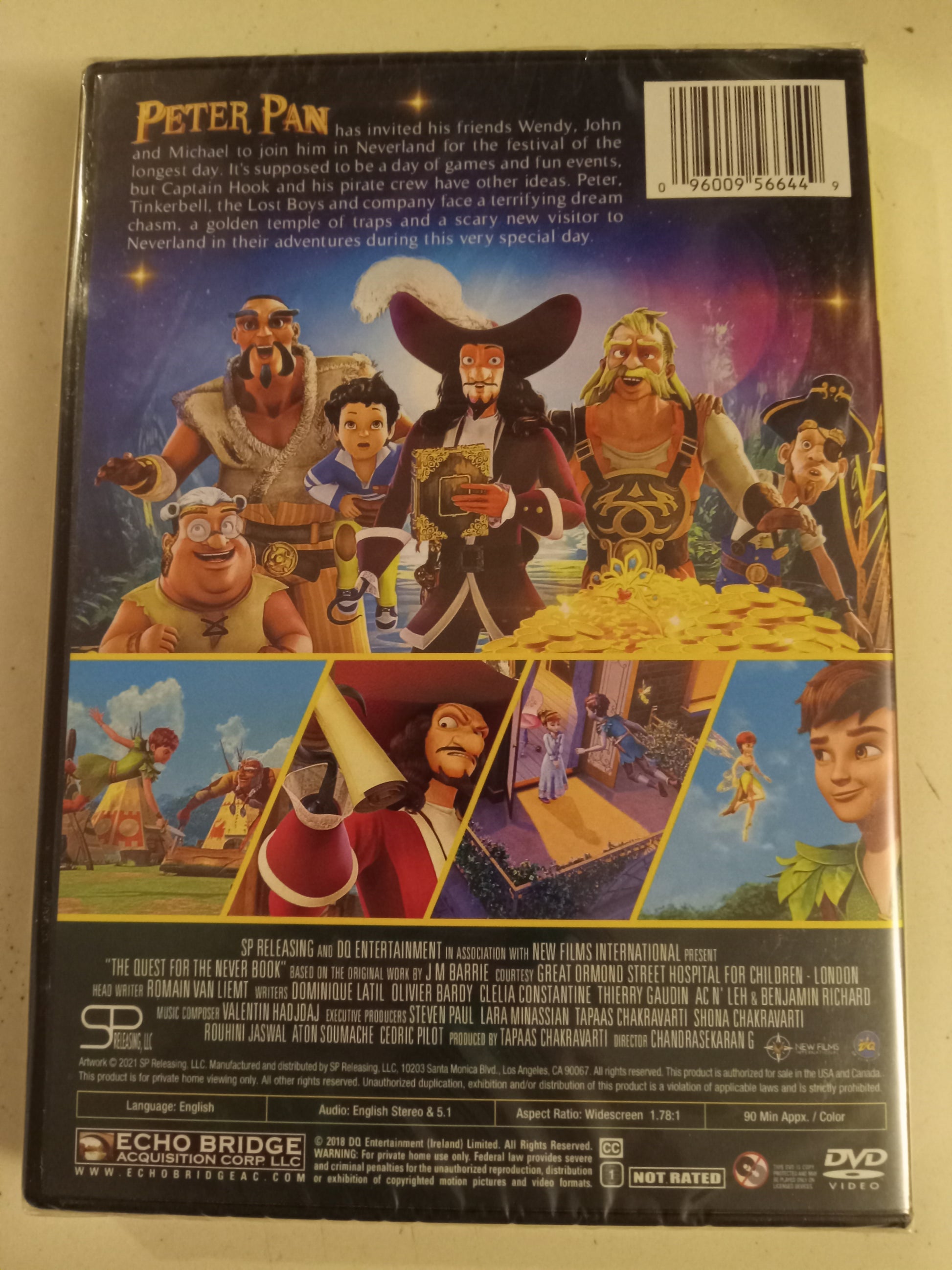 Peter Pan The Quest For The Never Book, Do Entertainment Animation DVD Movie, Widescreen, Not Rated, NEW