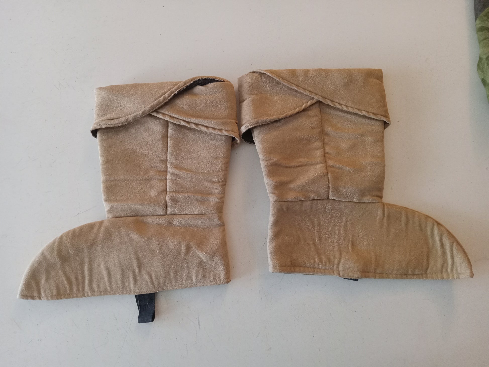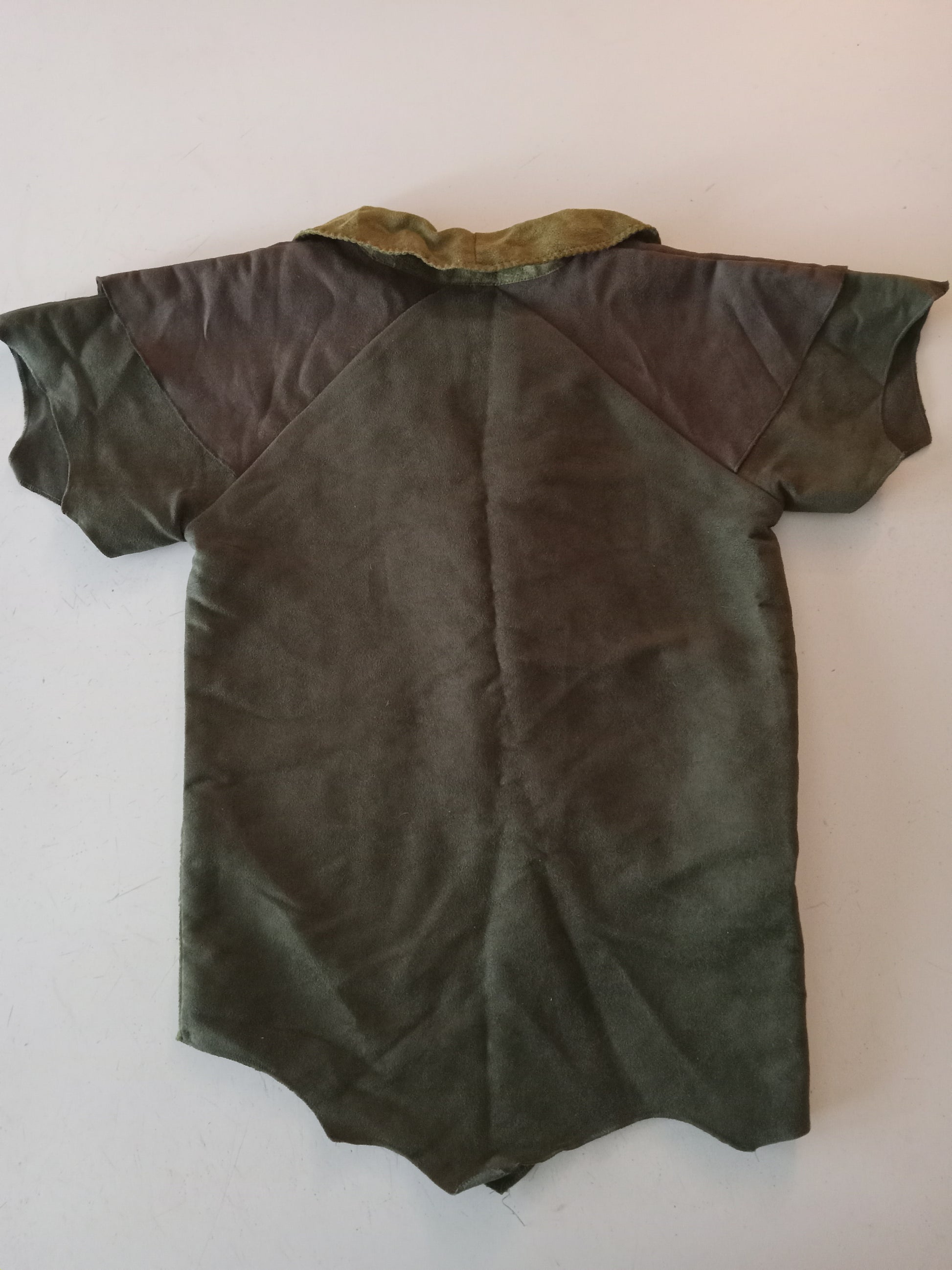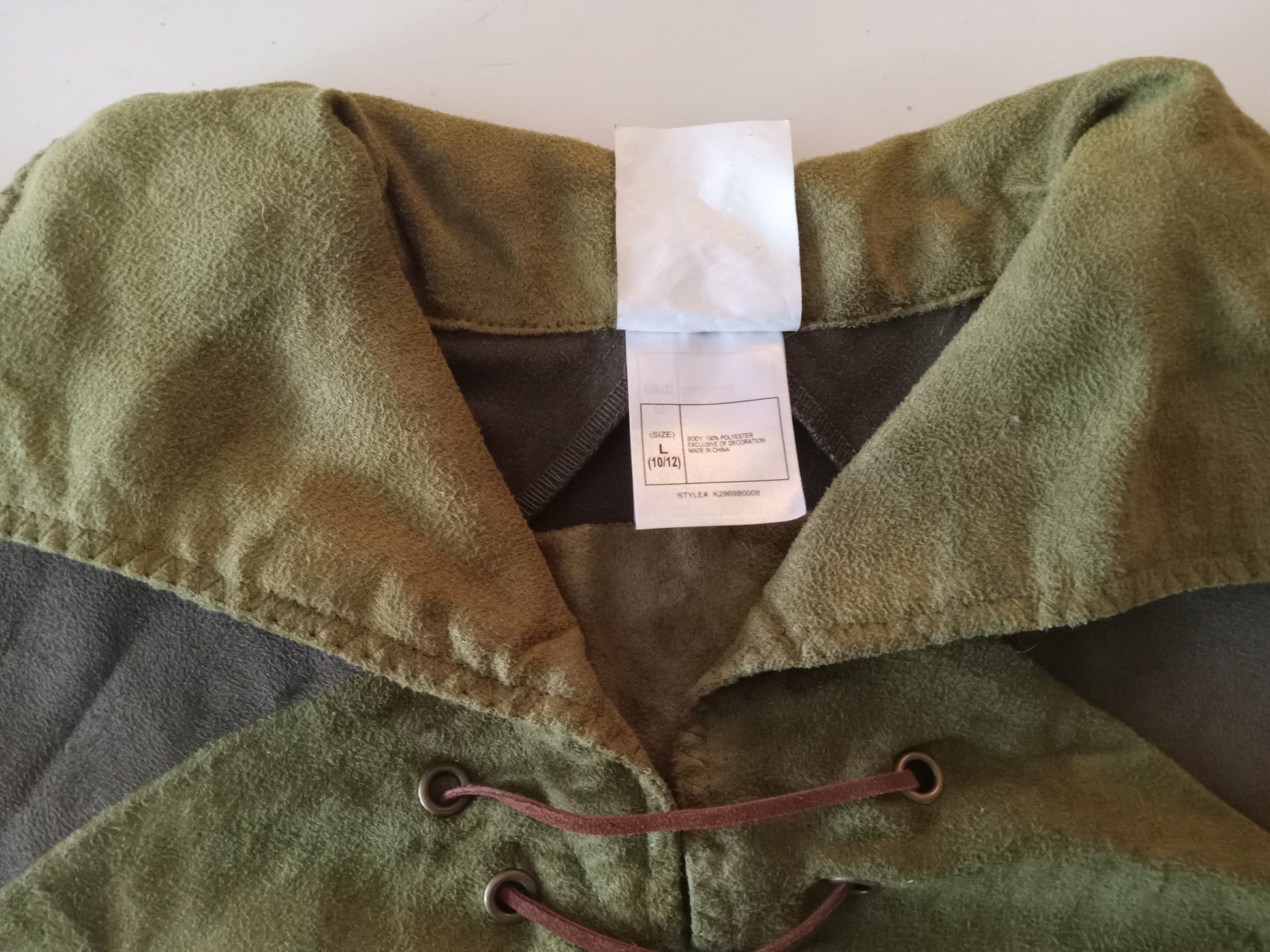 Peter Pan, or Woodsman, or Medieval Swordsman, or even a Twilight Princess Link Cosplay Child's Halloween Costume USED. This costume is used in great condition with little to no signs of use. It could make a base starting costume for all kinds of historic characters like Peter Pan, swordsman, Nintendo's Link character, etc. Included with this sale: shirt top, pants, and boot covers.
