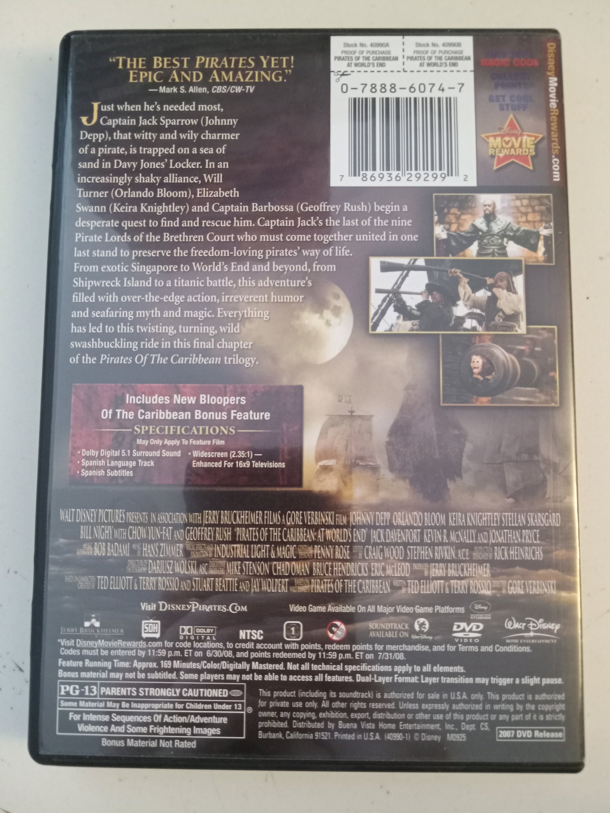 Pirates Of The Caribbean At Worlds End, DVD Movie, Johnny Depp Widescreen, Rated PG-13, USED