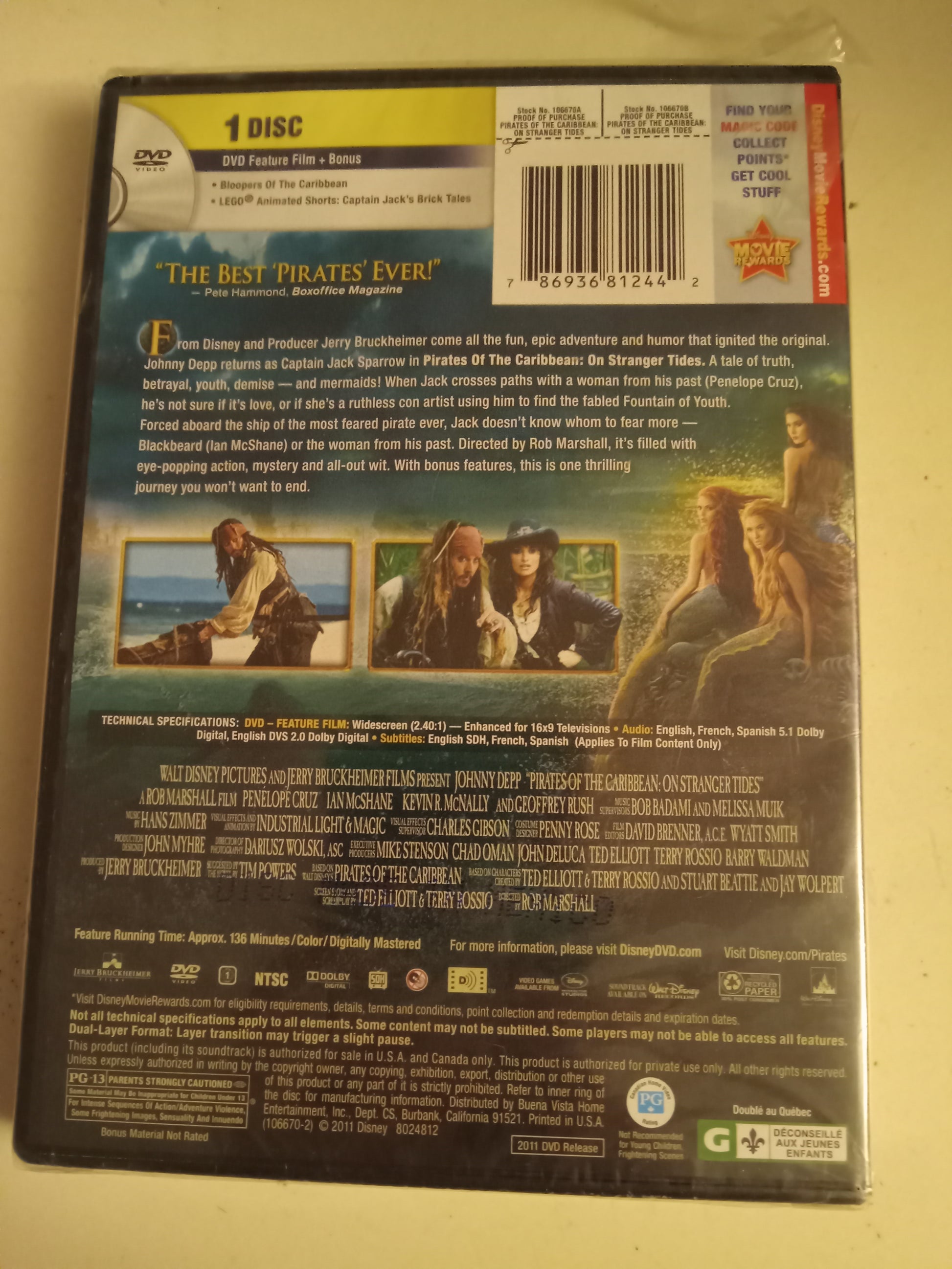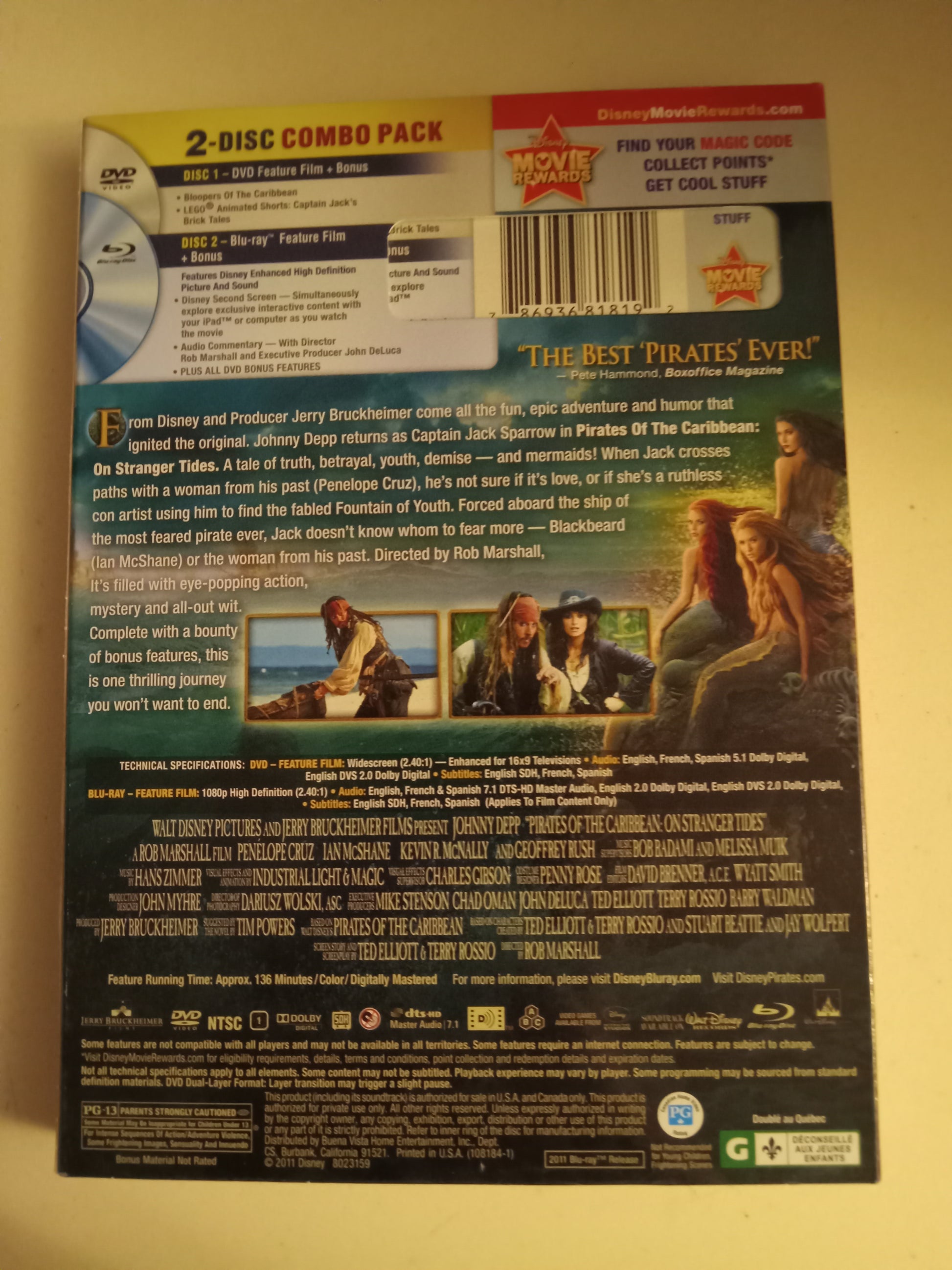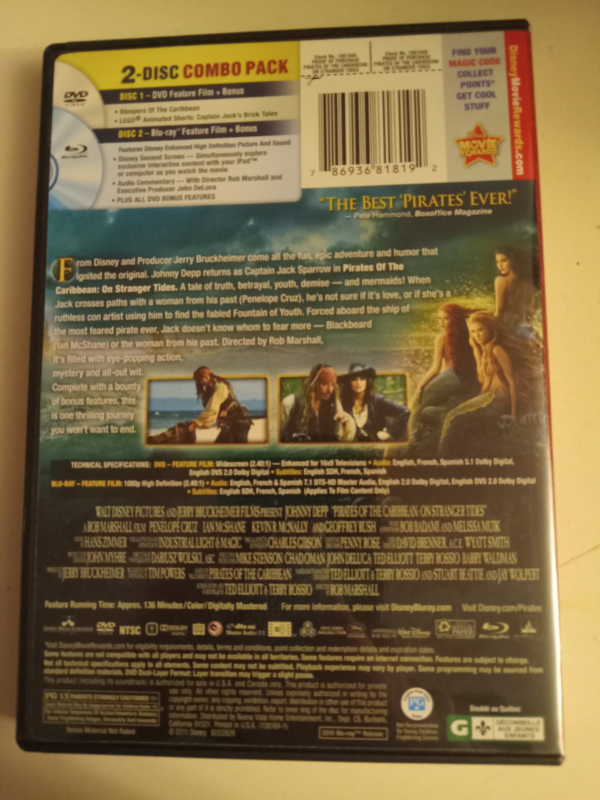 Pirates Of The Caribbean On Stranger Tides, Blu-Ray or DVD Movie, Johnny Depp Widescreen, Rated PG-13, NEW or USED.