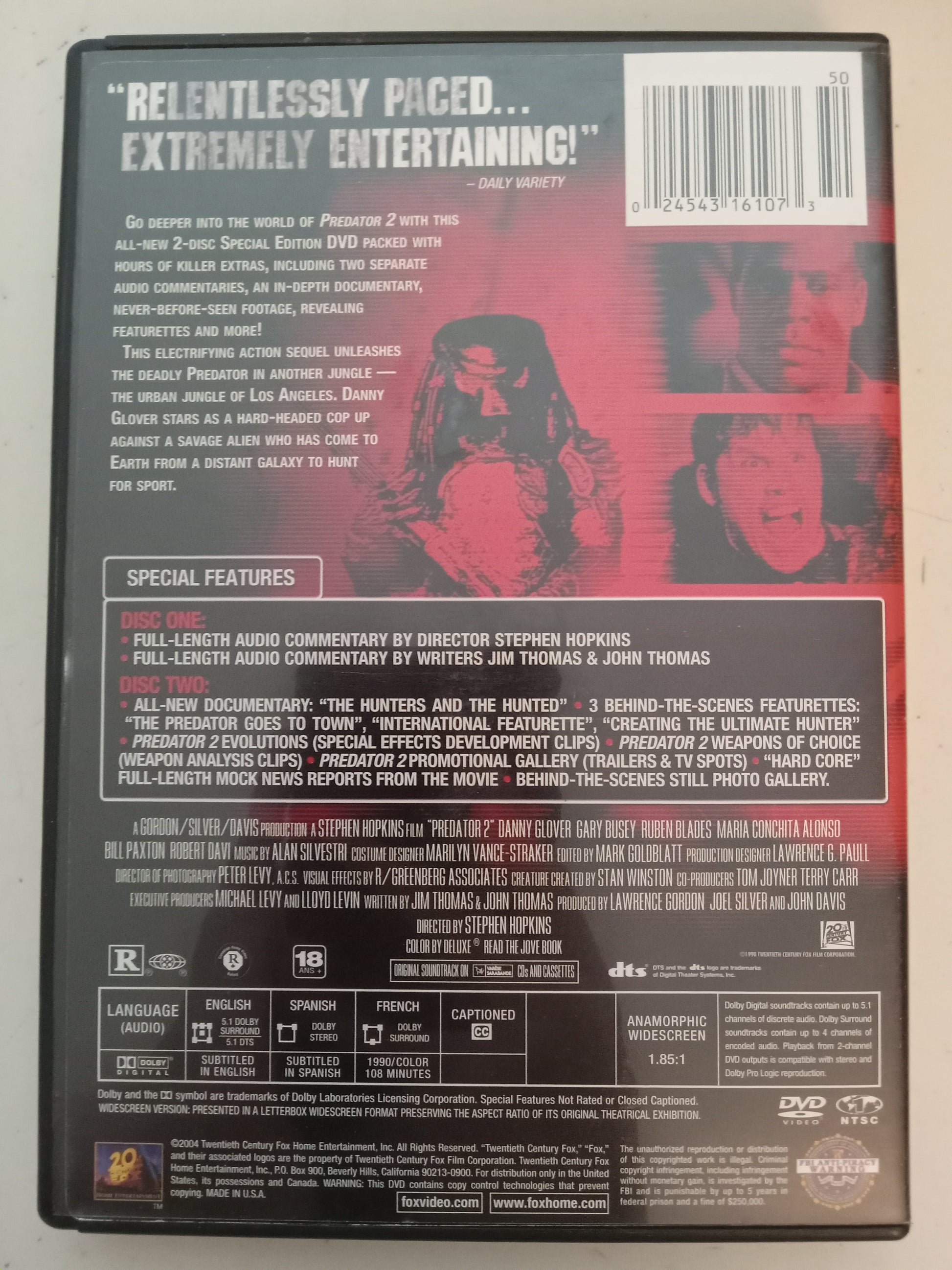 Predator 2, DVD Movie, Danny Glover Widescreen, Special Ed. Rated R, USED
