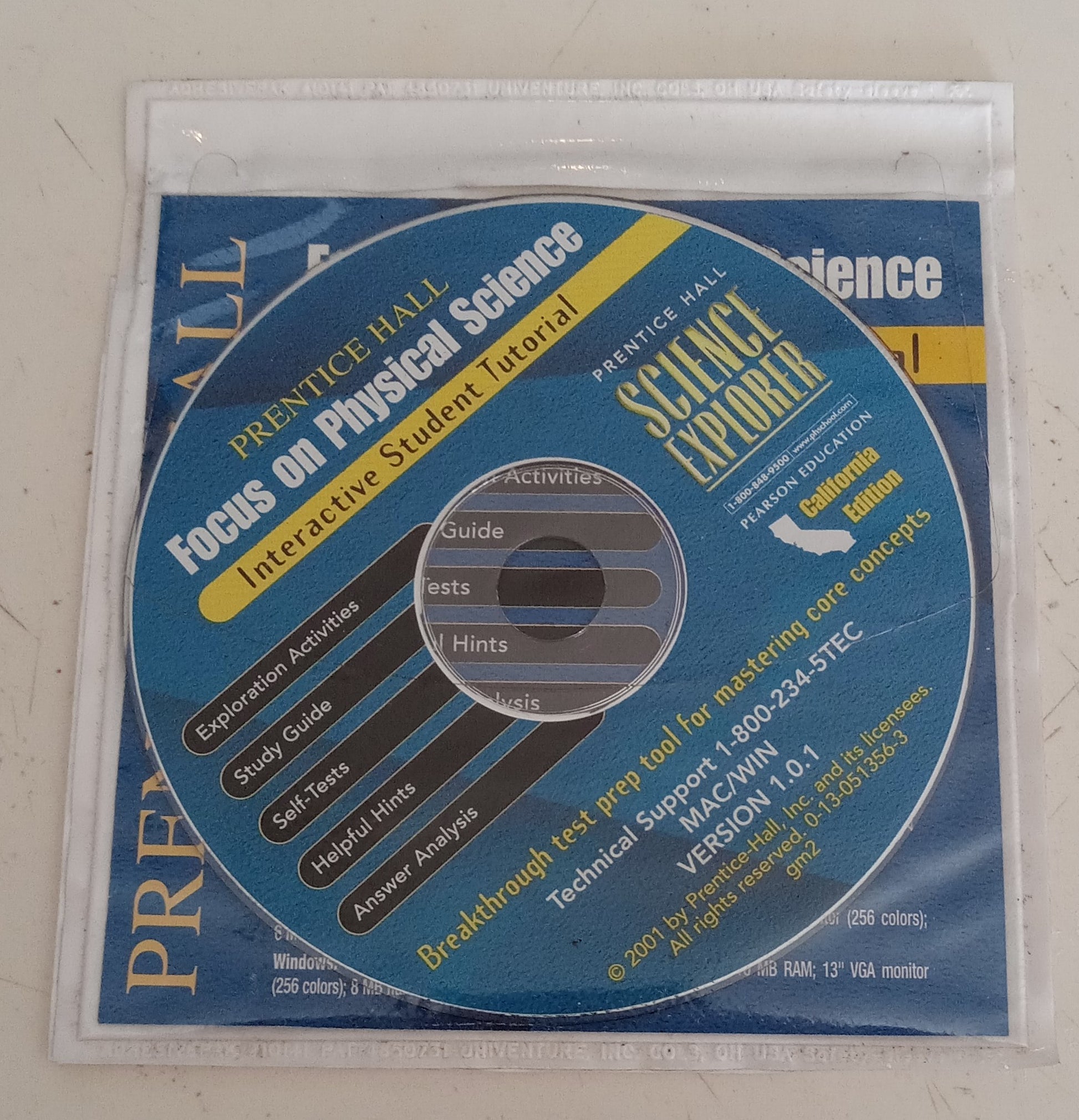 Prentice Hall Focus on Physical Science Explorer Interactive Student Tutorial Test Prep CDRom, UNUSED. California Edition.