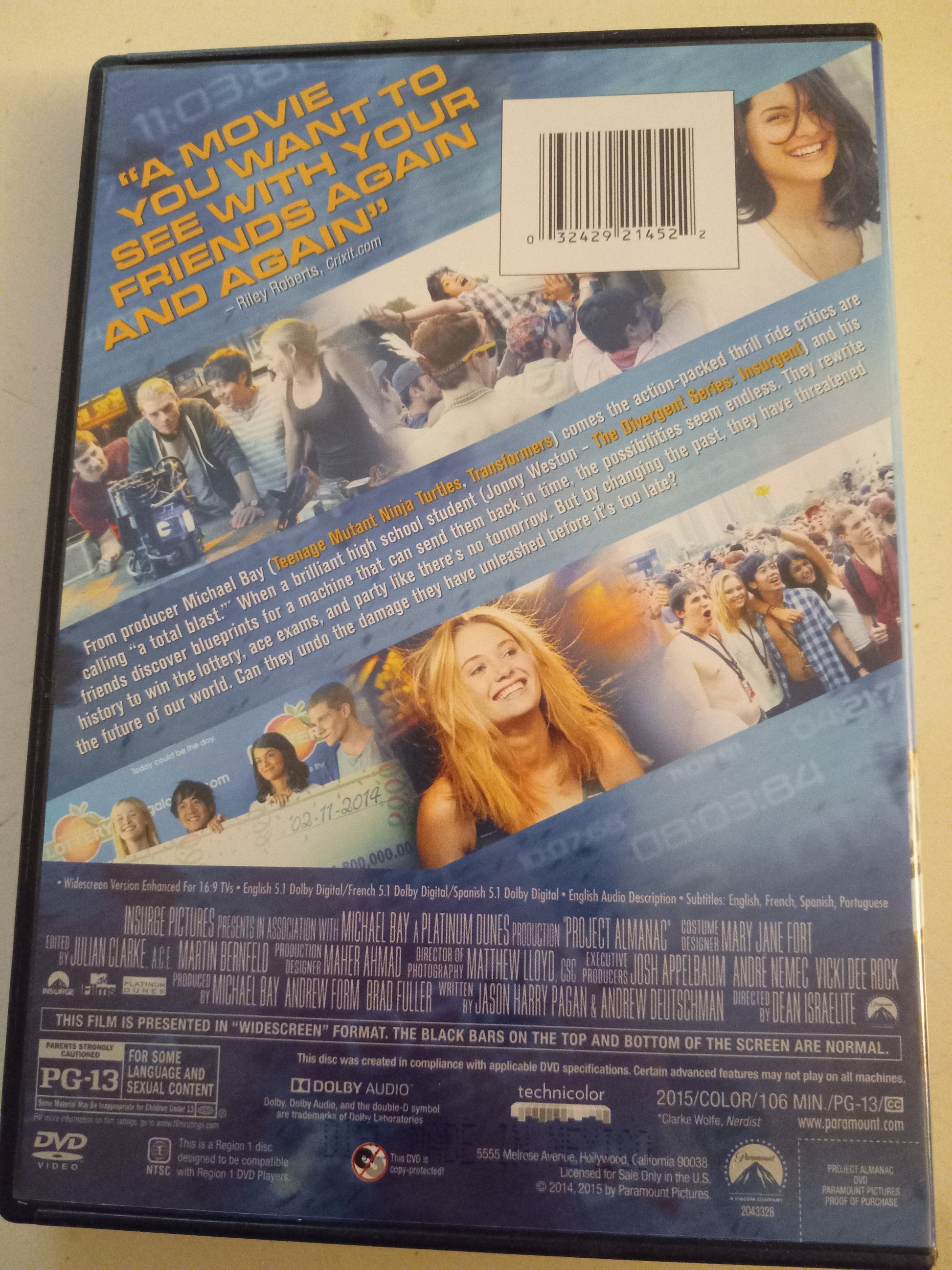 Project Almanac, DVD Movie, Widescreen, Rated PG-13, USED