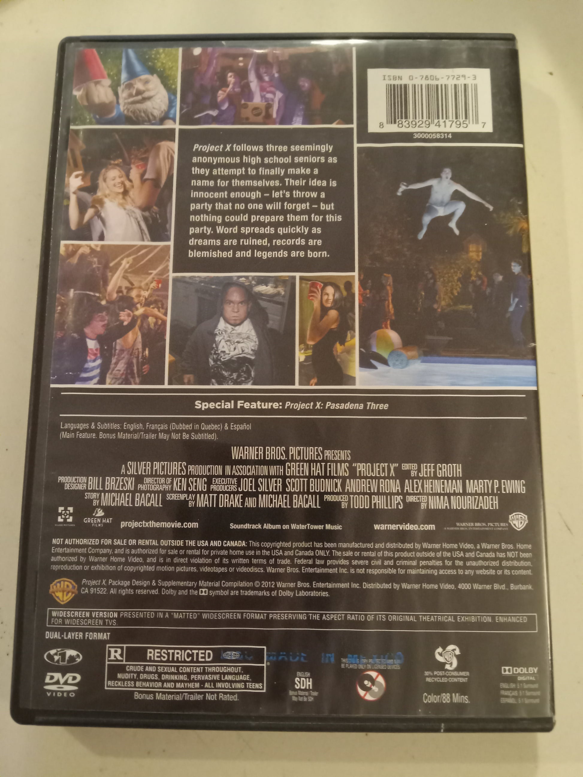 Project X, DVD Movie, Todd Philips Widescreen, Rated R, USED