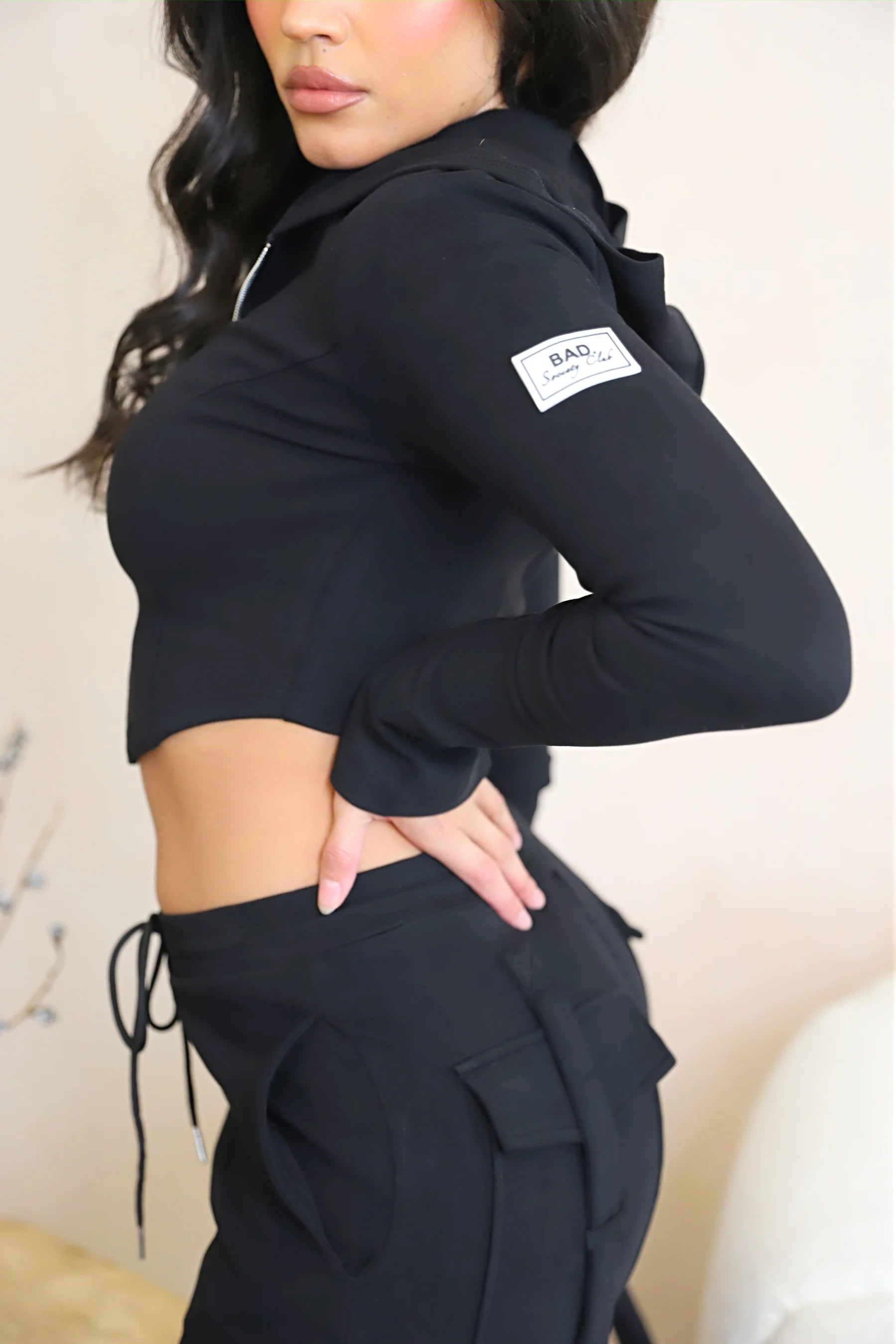 Quazen- Cozy Warm Corset Short Hoodie Top Black Gray Pink AMB