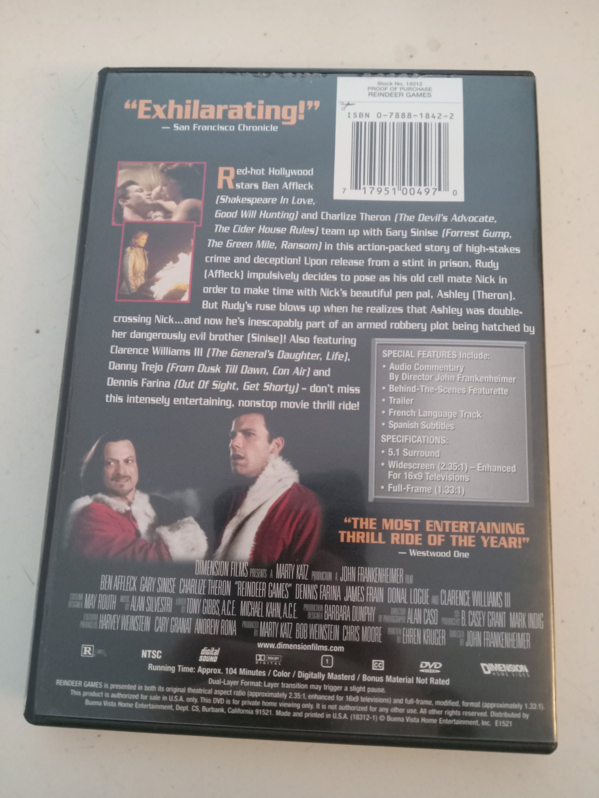 Reindeer Games, DVD Movie, Ben Affleck Widescreen, Rated R, USED