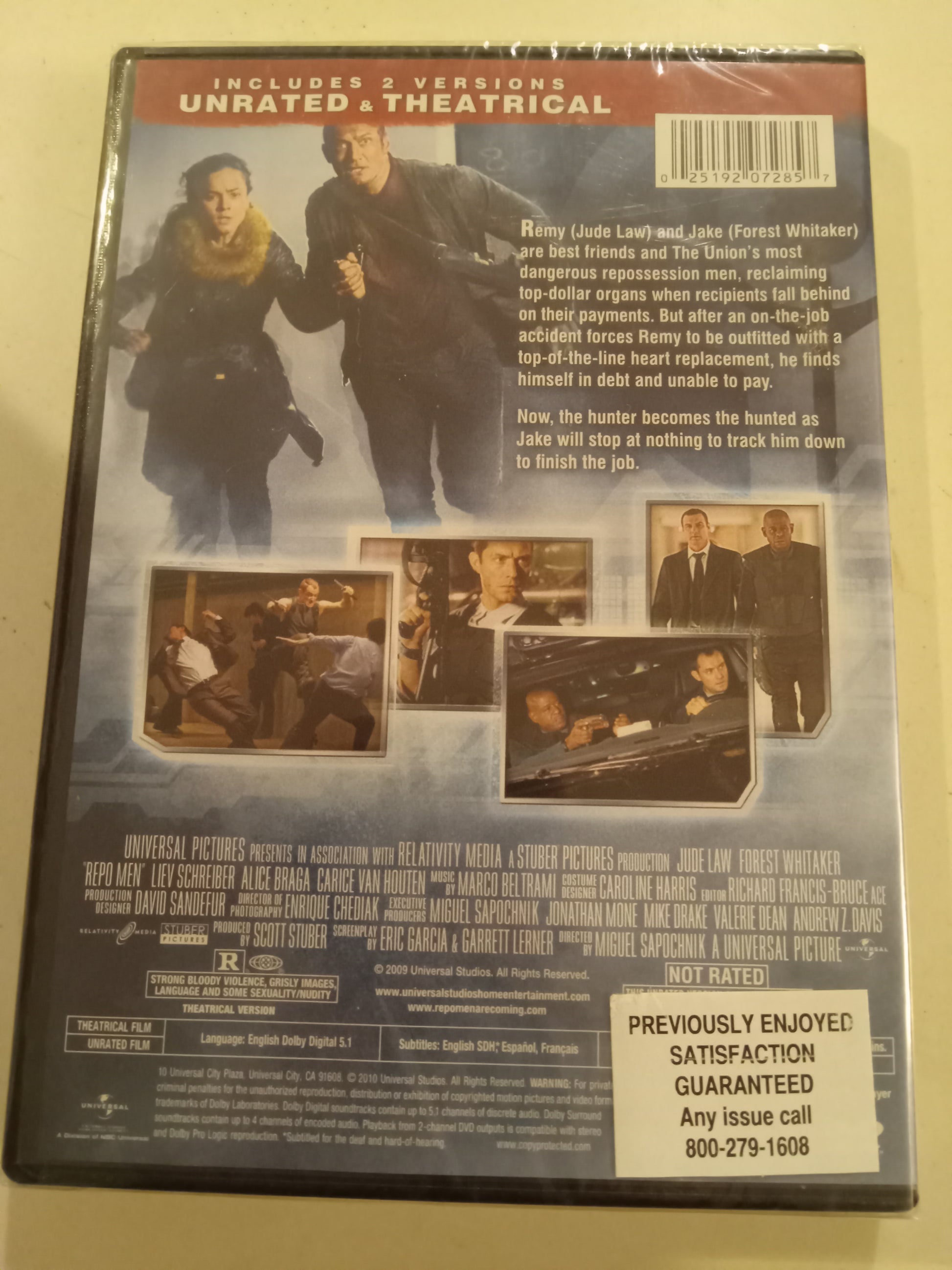 Repo Men, includes 2 versions: unrated and theatrical. DVD Movie, Jude Law Widescreen, Rated R/Not-Rated, LIKE NEW or USED