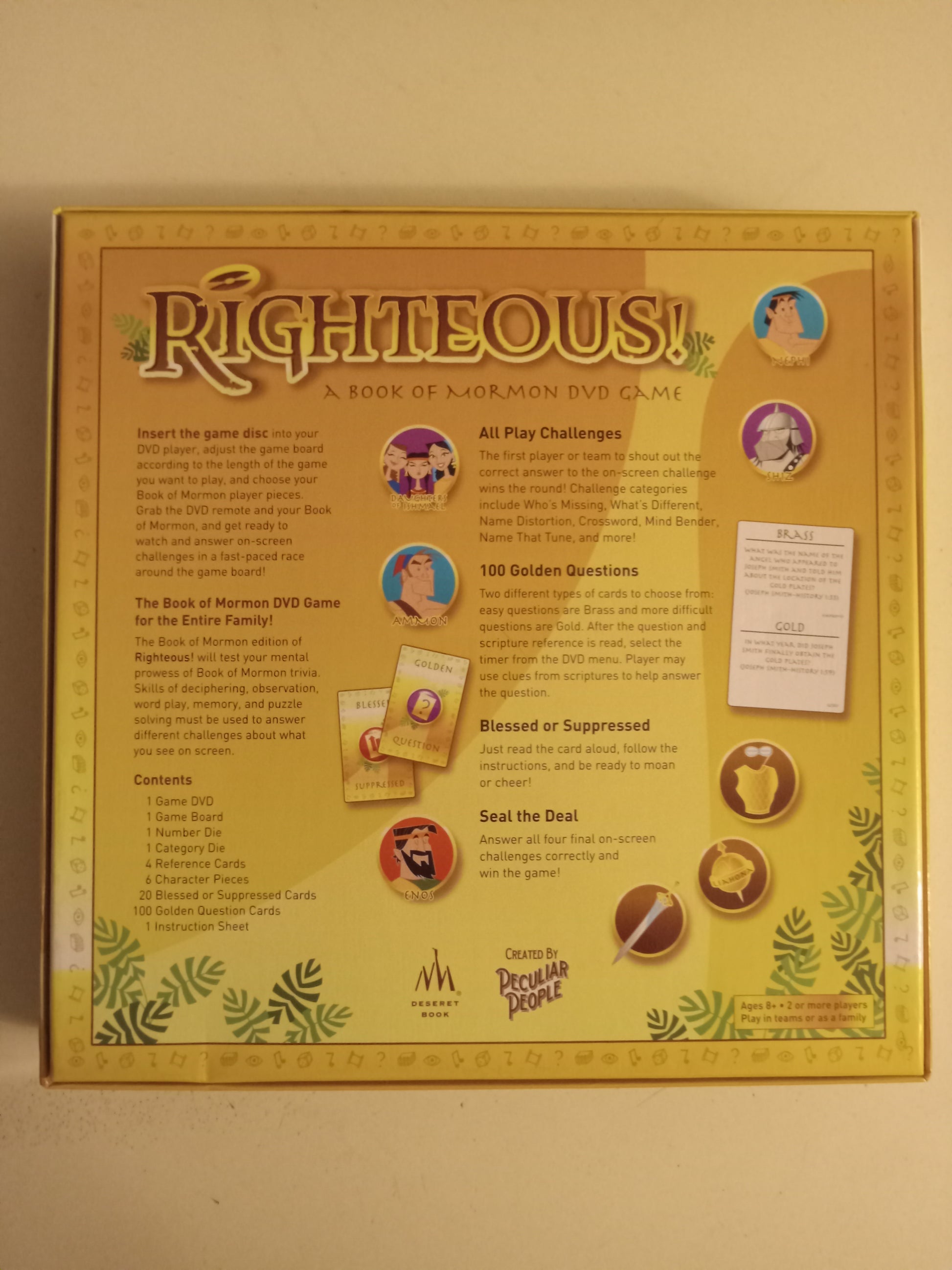 Righteous Book of Mormon DVD Board Game, LDS Party Interactive, Fun, USED.