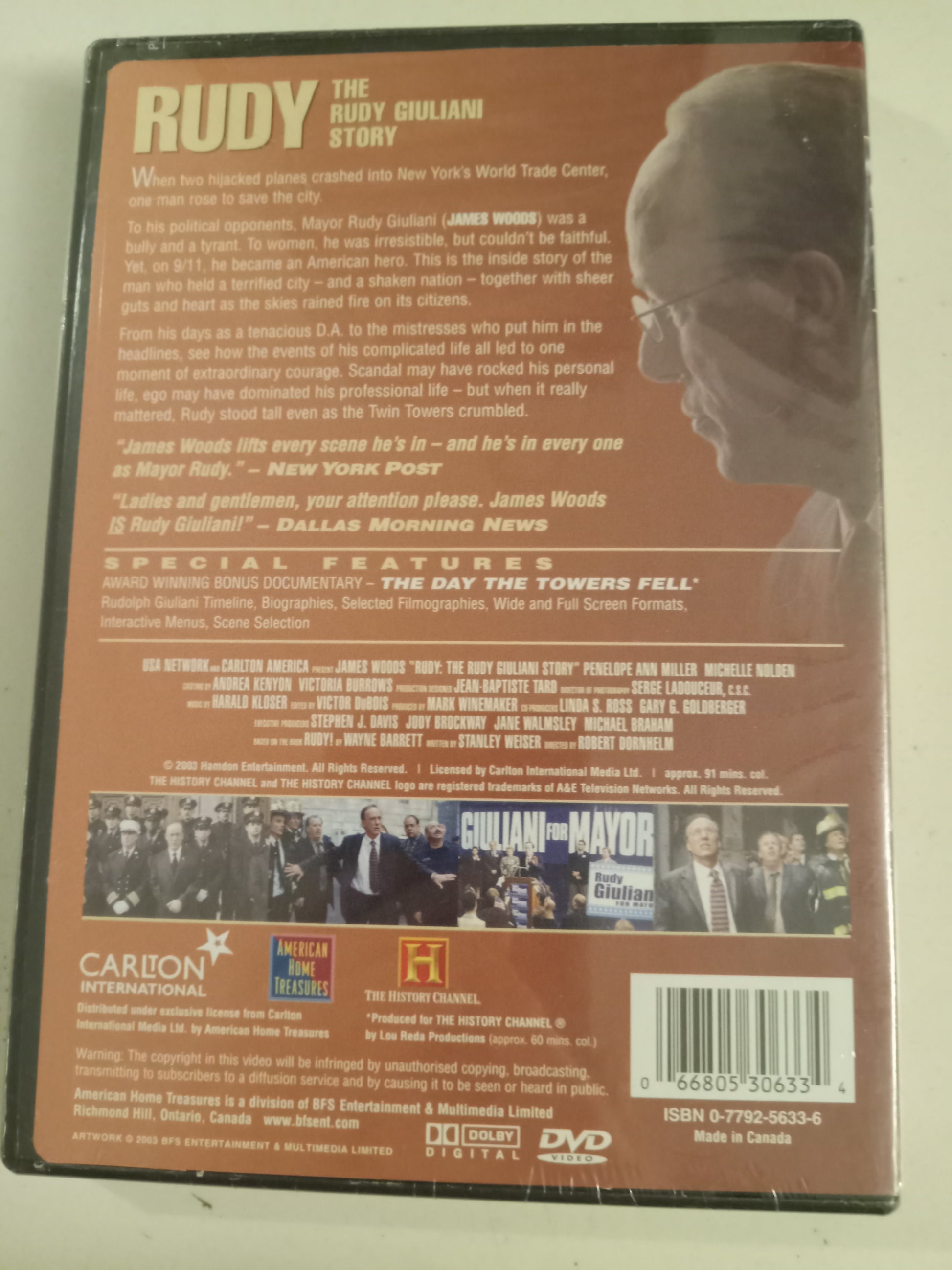 Rudy The Rudy Giuliani Story, he divided a city, he united a nation. DVD Movie, James Woods Fullscreen, Widescreen, Not Rated, NEW