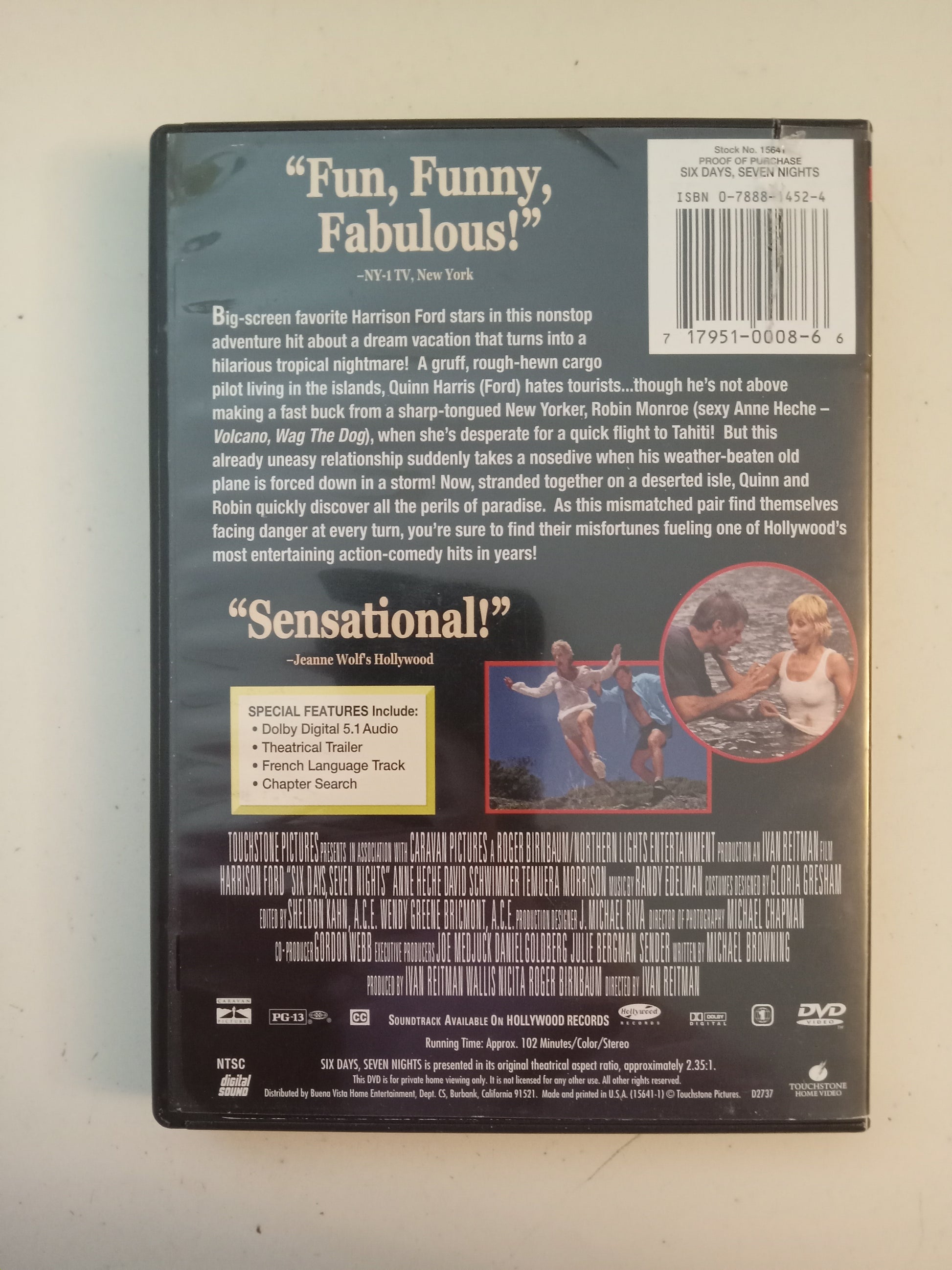 Six (6) Days Seven (7) Nights, after this week in paradise they'll need a vacation. DVD Movie, Harrison Ford Widescreen, Rated PG-13 USED