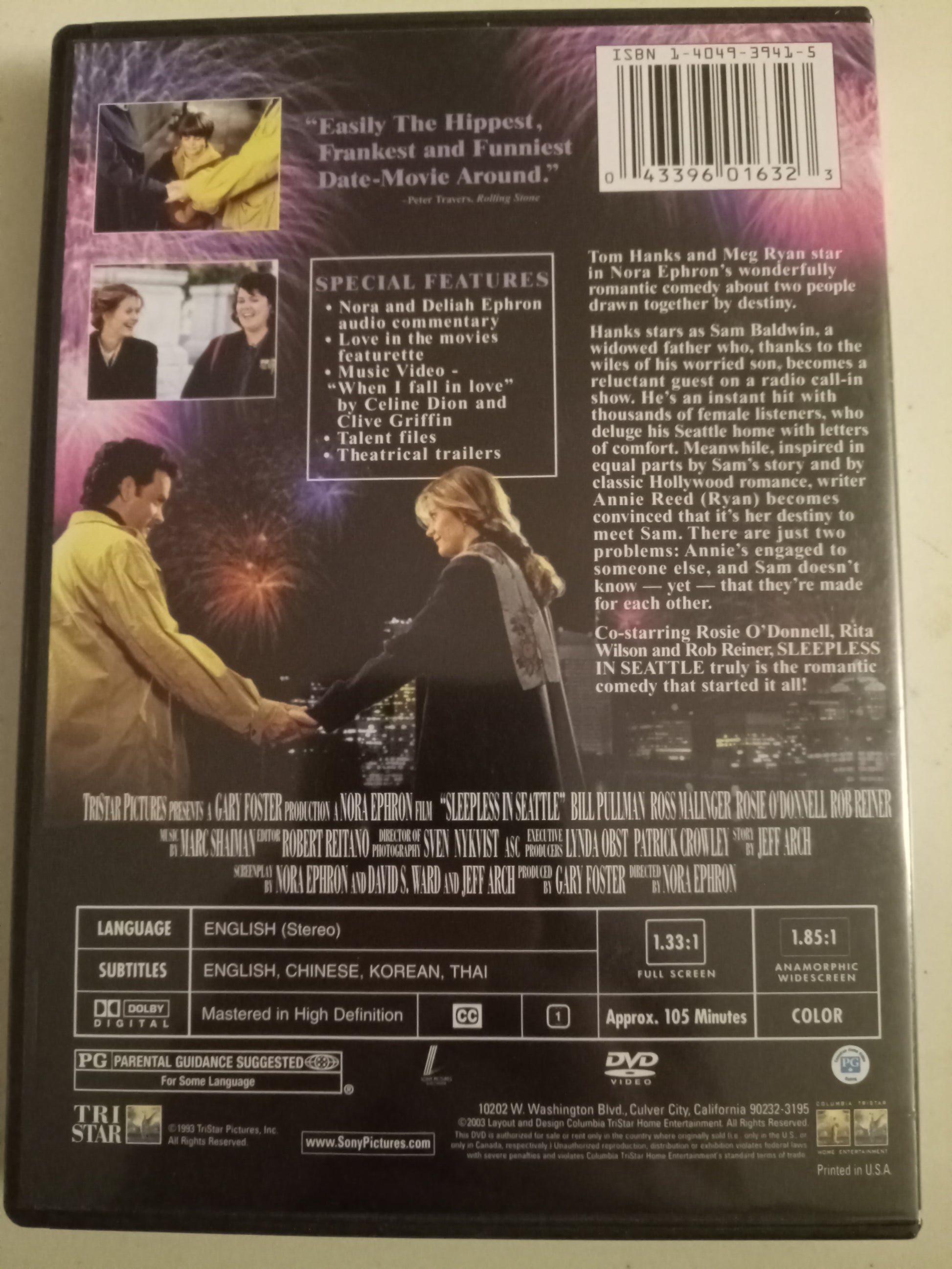 Sleepless In Seattle, DVD Movie, Fullscreen, Rated PG, USED
