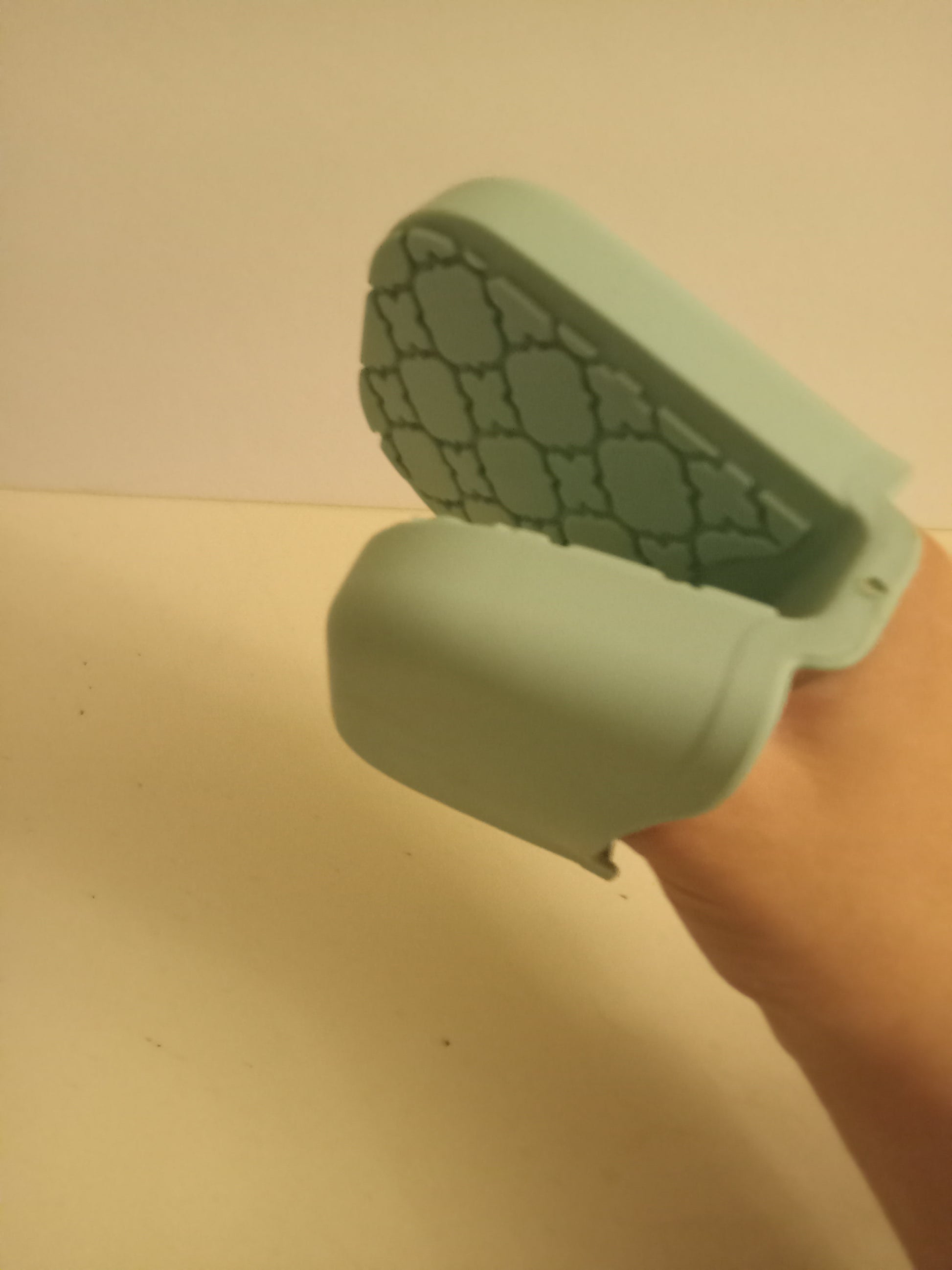 Green mitts measure: 2.5 inches x 4 inches x 4.25 inches