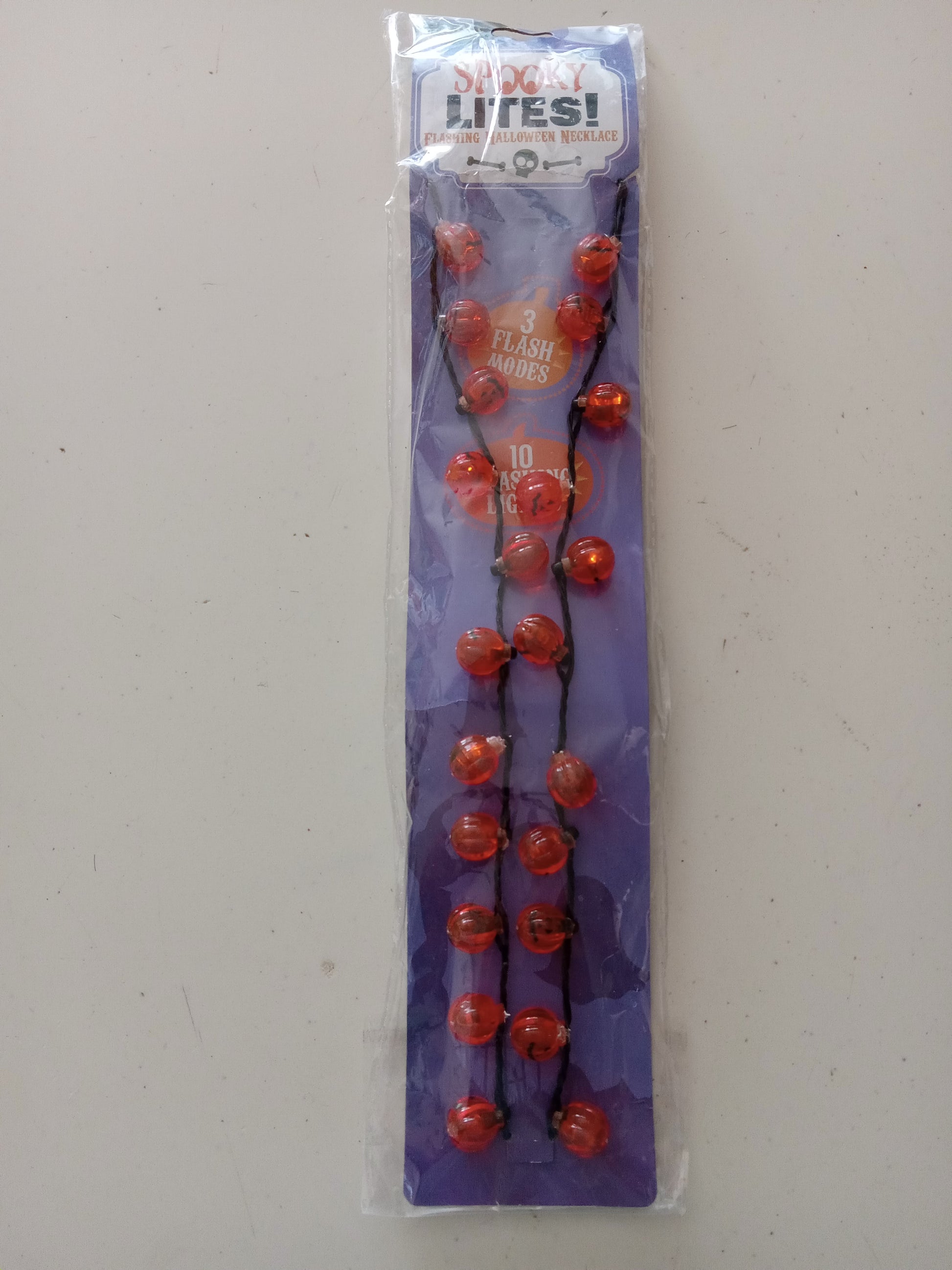 Spooky Lights Halloween Necklace, Steady On, Flashing Lites! Multi-functional, NEW. Orange glowing Jack-o-lanterns.