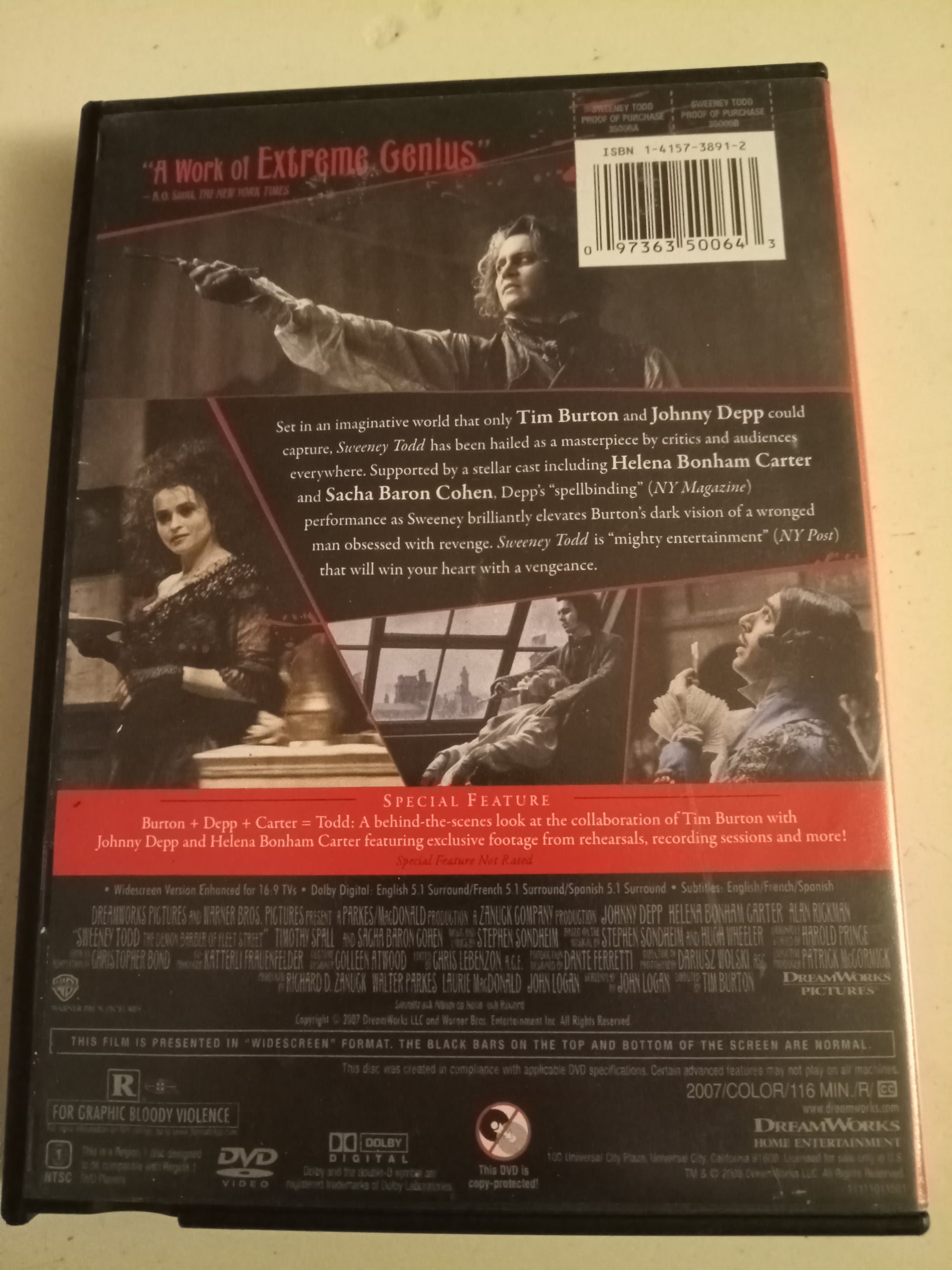 Sweeney Todd The Demon Barber Of Fleet Street, DVD Movie, Widescreen, Rated R, USED