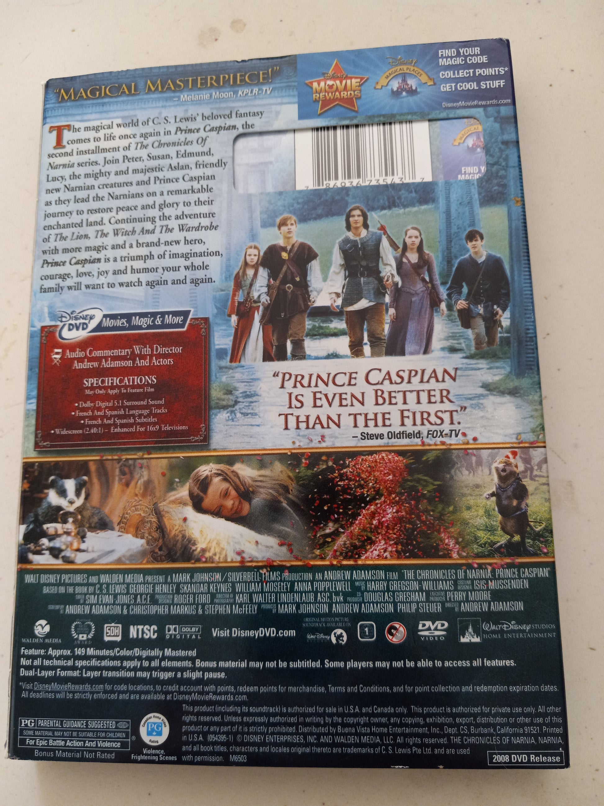 The Chronicles Of Narnia Prince Caspian, DVD Movie, Rated PG, Widescreen, USED