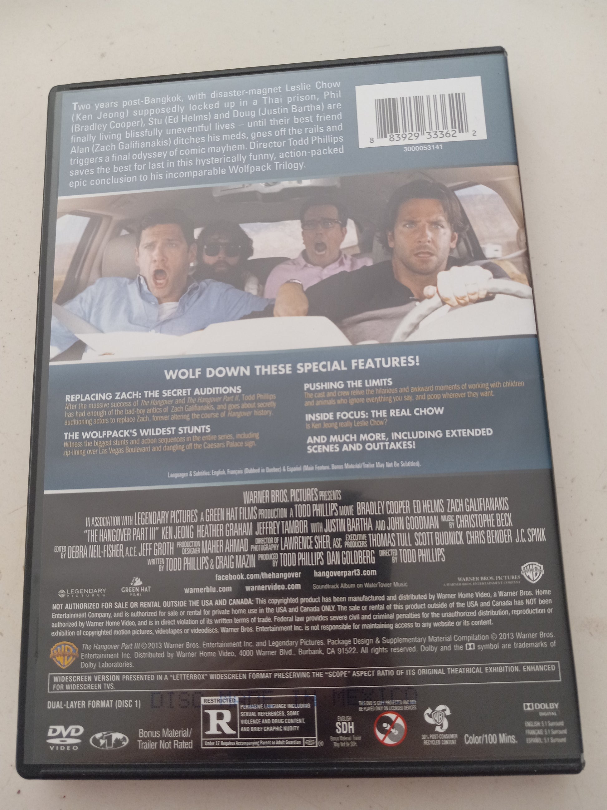 The Hangover Part III 3, DVD Movie, 2 Disc Special Ed, Bradley Cooper Widescreen, Rated R, NEW/USED