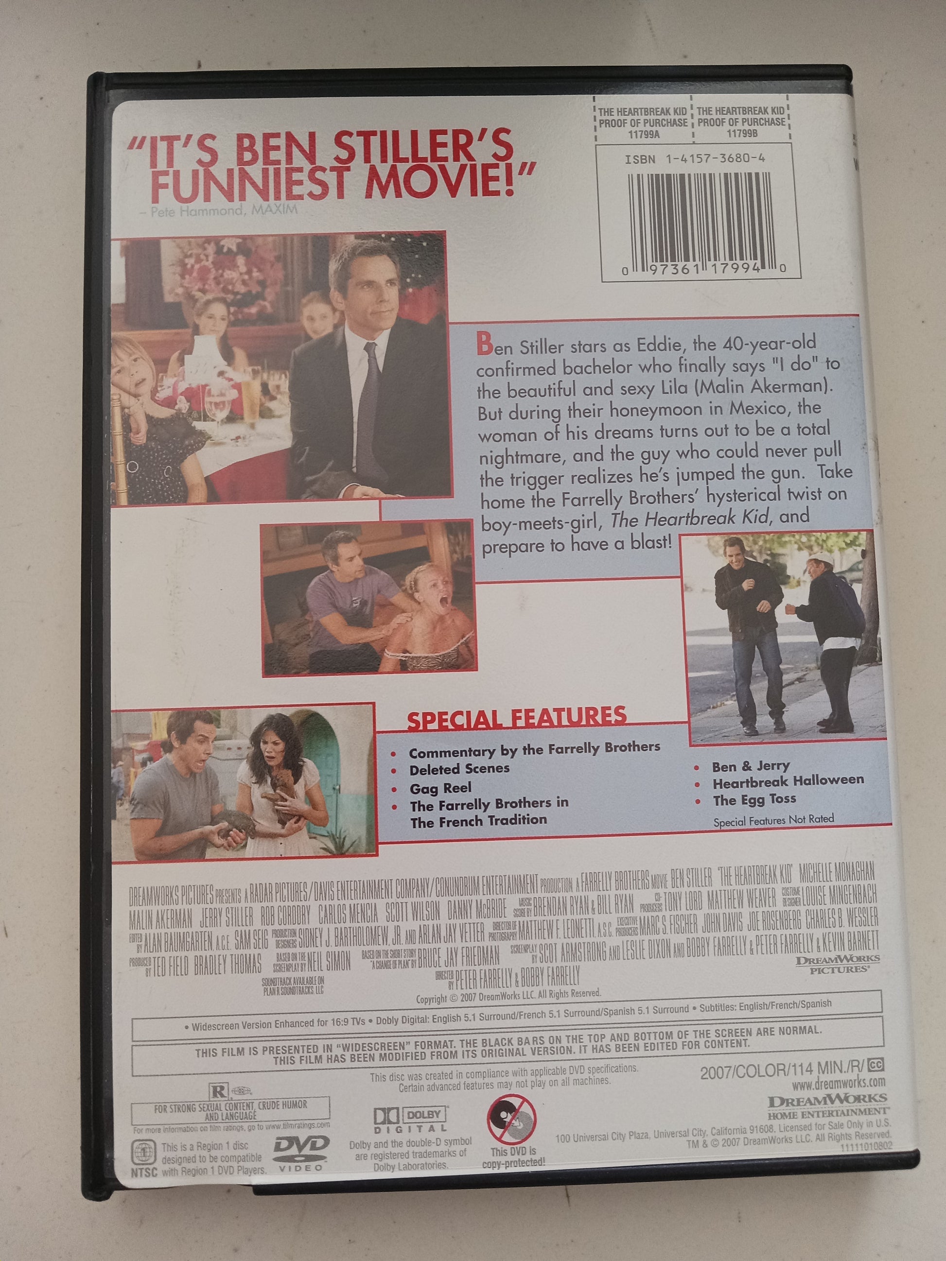 The Heart Break Kid, DVD Movie, Ben Stiller Widescreen, Rated R, USED