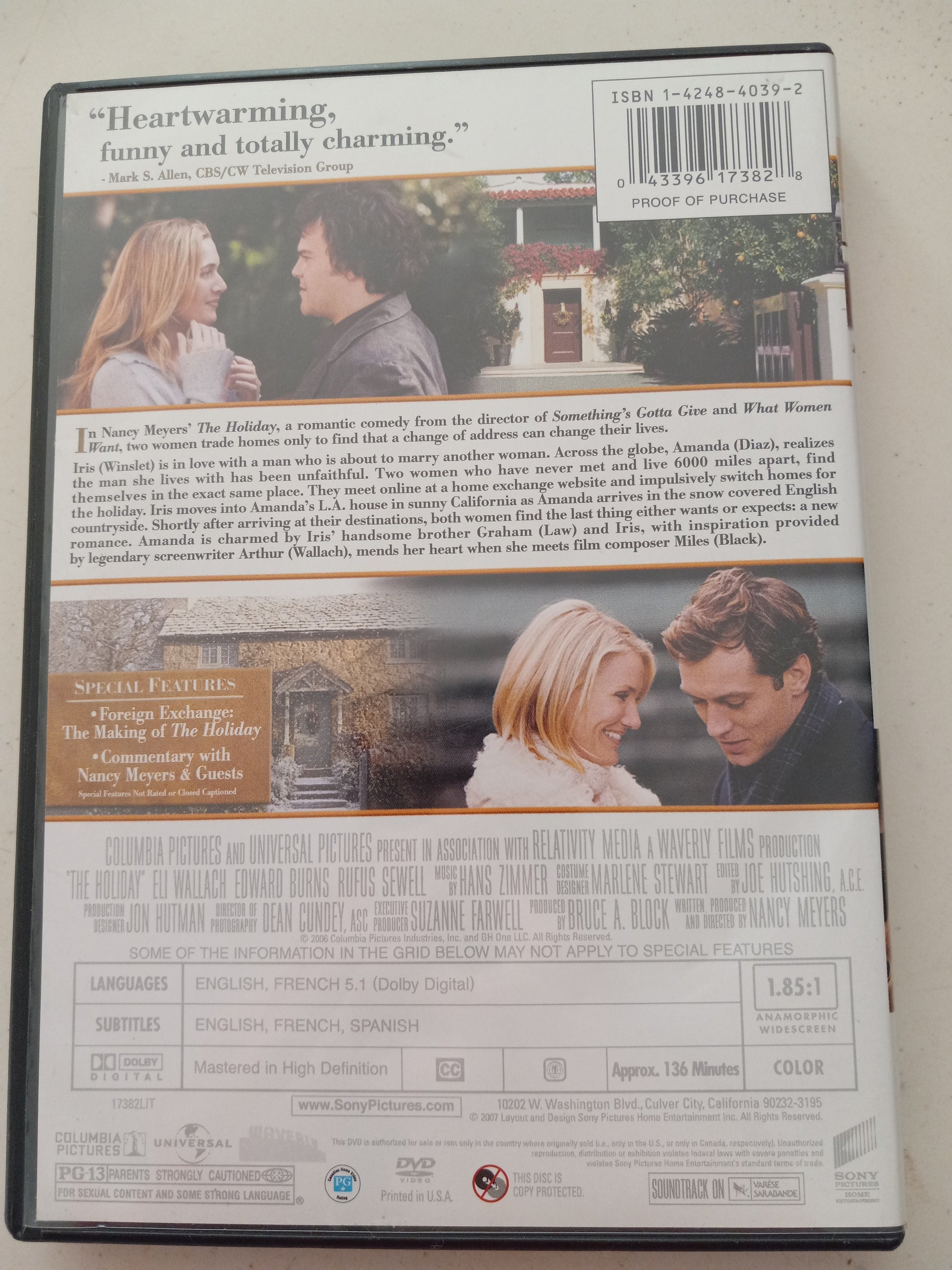 The Holiday, DVD Movie, Cameron Diaz, Widescreen, Rated PG, USED.