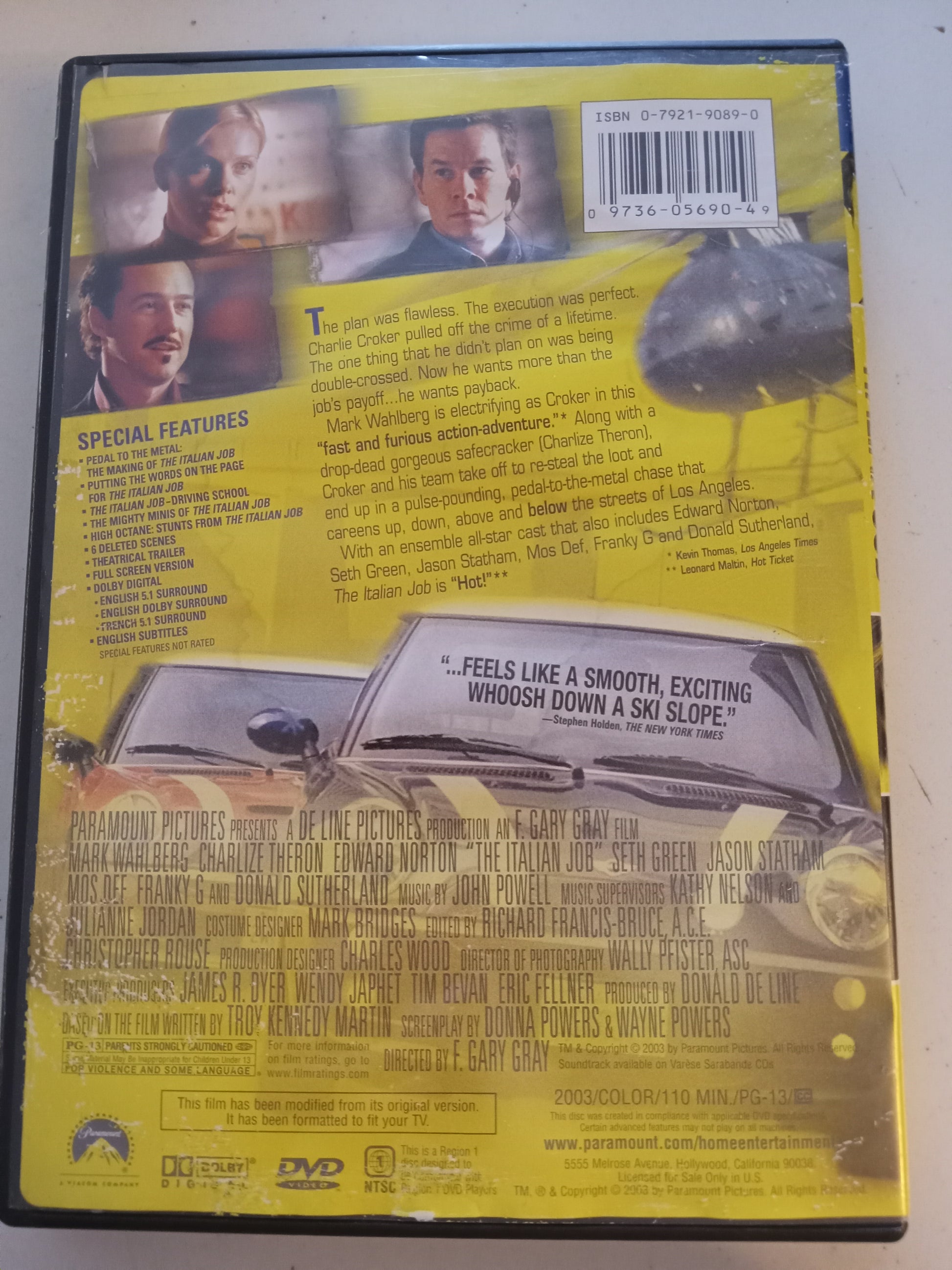 The Italian Job, DVD Movie, Mark Wahlberg Fullscreen, Rated PG-13, USED