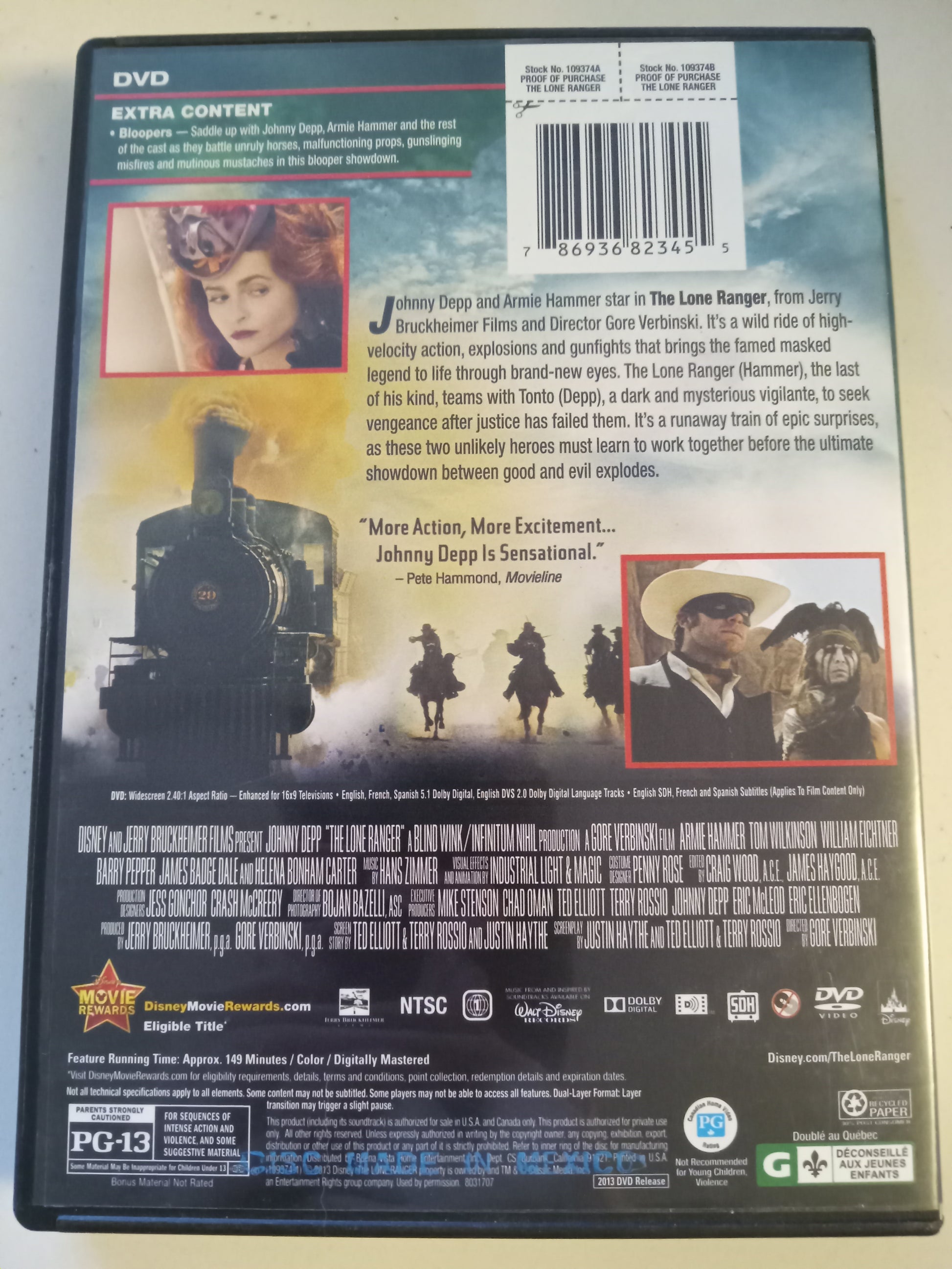 The Lone Ranger, DVD Movie, Johnny Depp Widescreen, Rated PG-13, USED