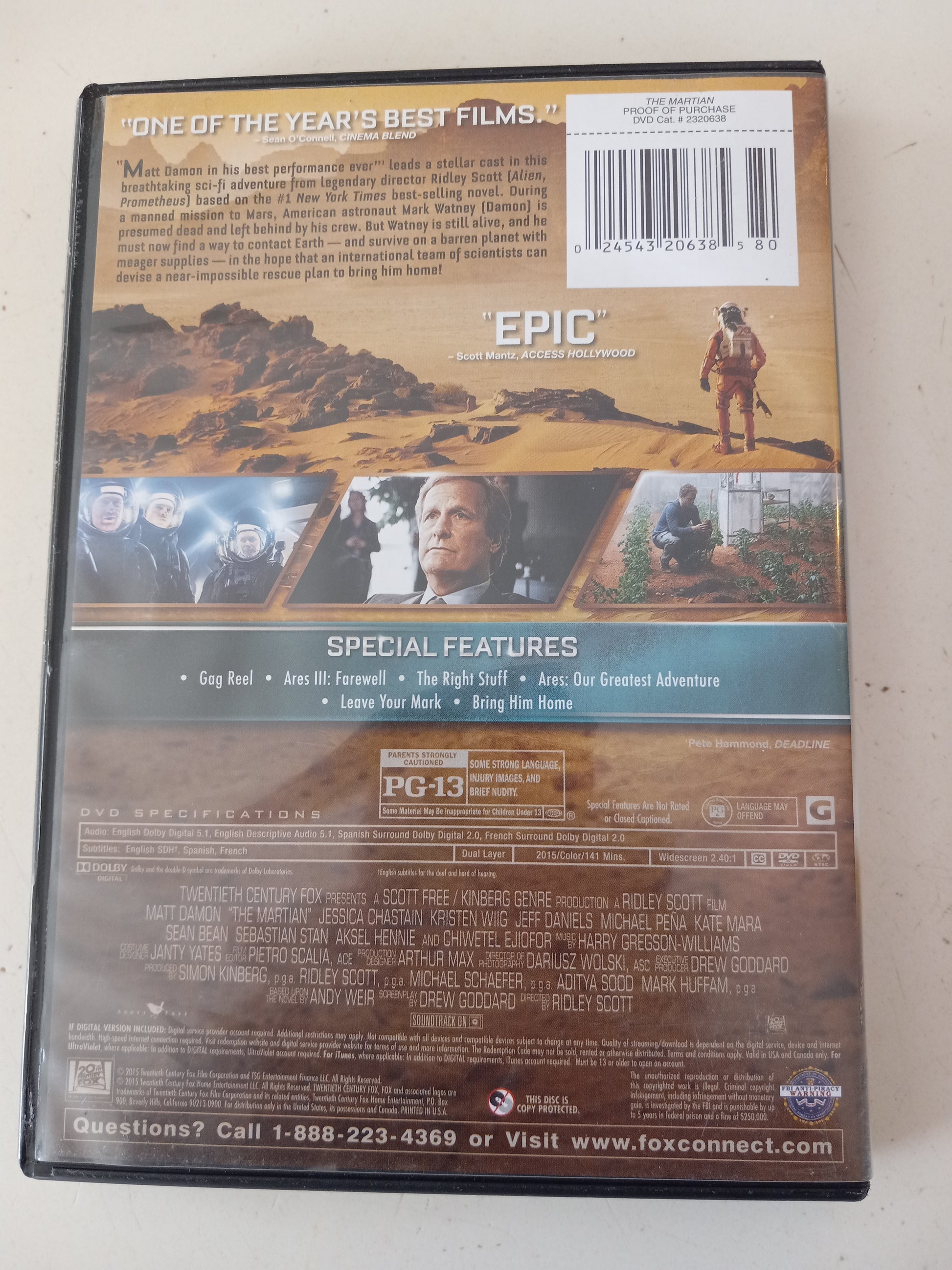 The Martian, DVD Movie, Widescreen, Rated PG-13, USED