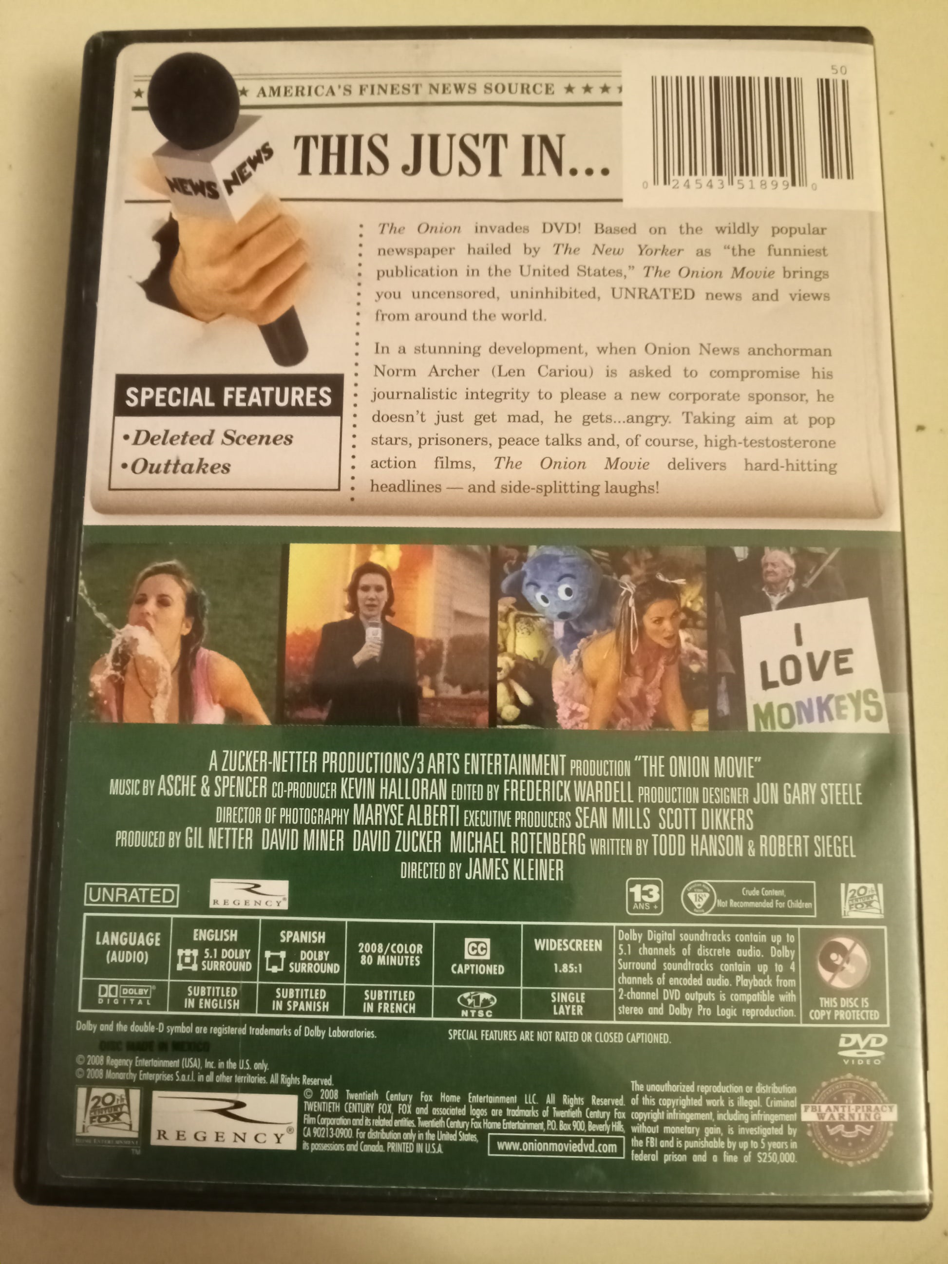 The Onion Movie, America's Finest News Source. Revealing The Raw Truth, DVD Movie, Widescreen, Not Rated, USED