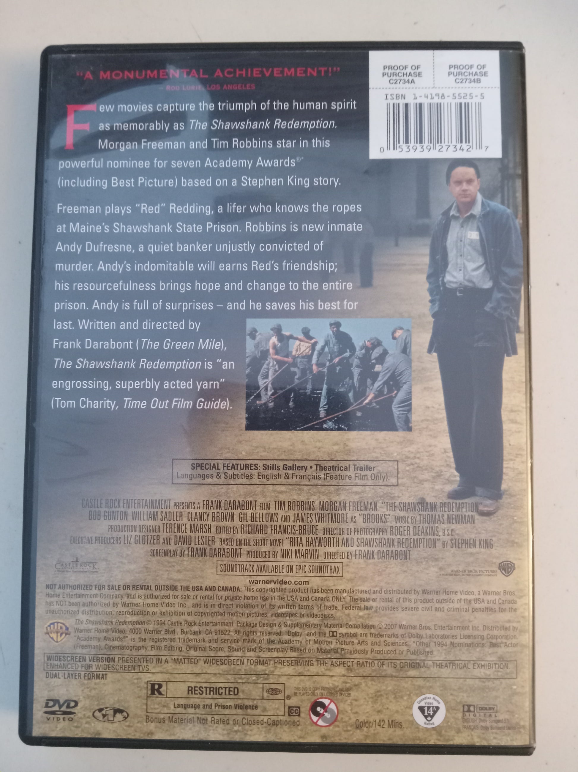The Shawshank Redemption, DVD Movie, Tim Robbins Widescreen, Rated R, USED