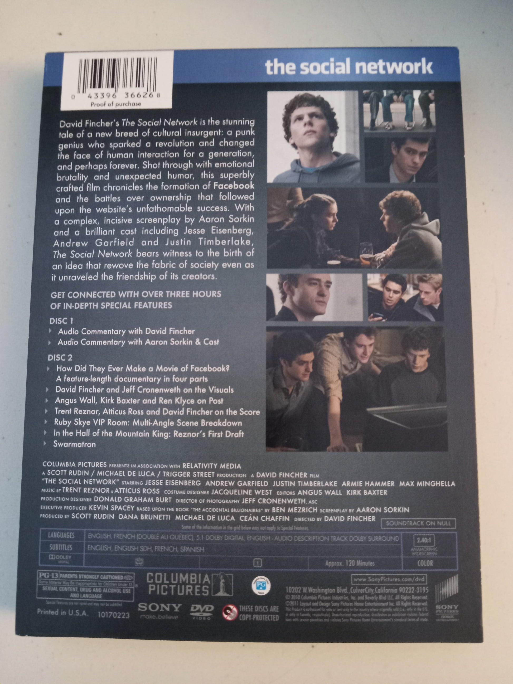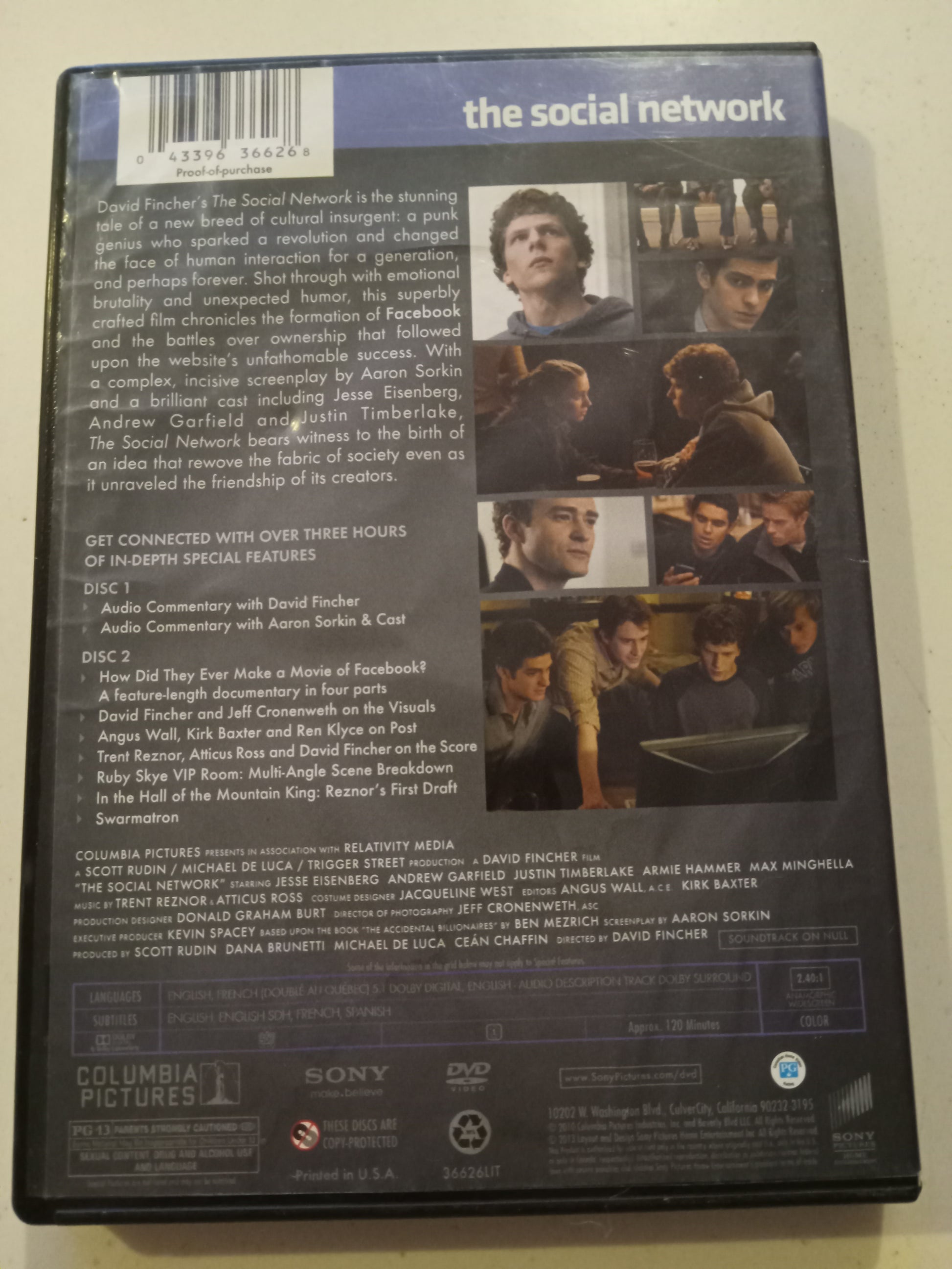 The Social Network, 2 Disc Collector's Ed. DVD Movie, Jesse Eisenberg Widescreen, Rated PG-13, USED