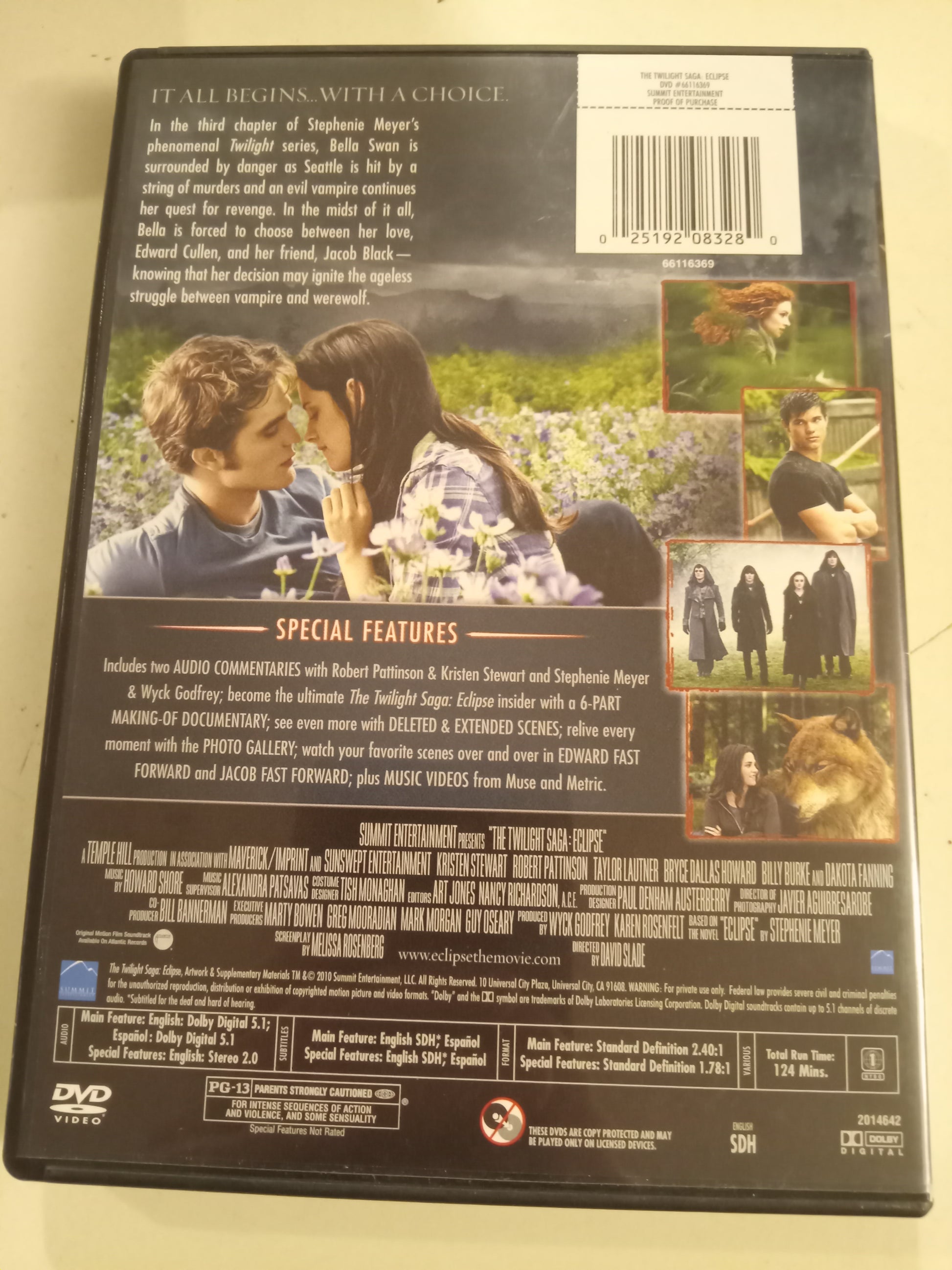 The Twilight Saga Eclipse, DVD Movie, 2 Disc Special Edition or 1 disc Standard Edition, or 2 Disc Collector's Gift Set, Kristen Stewart Widescreen, Rated PG-13, NEW or USED.