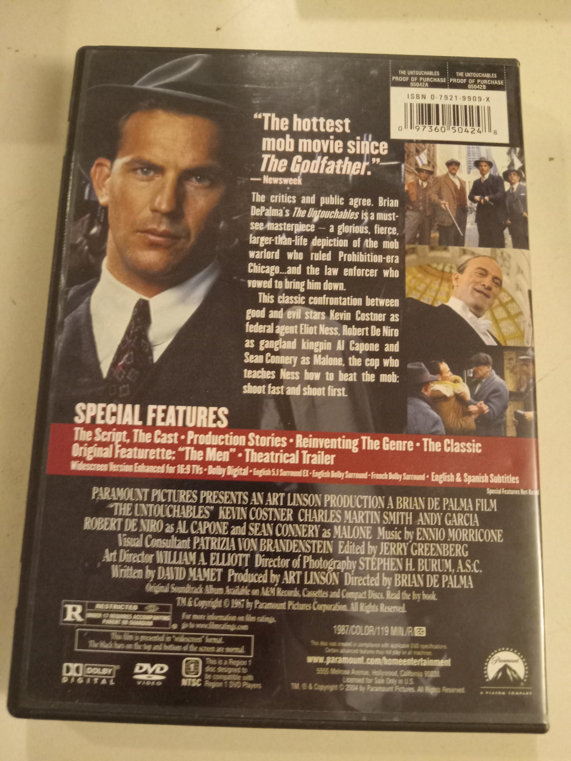 The Untouchables, Special Collector's Ed. DVD Movie, Kevin Costner Widescreen, Rated R, NEW/USED