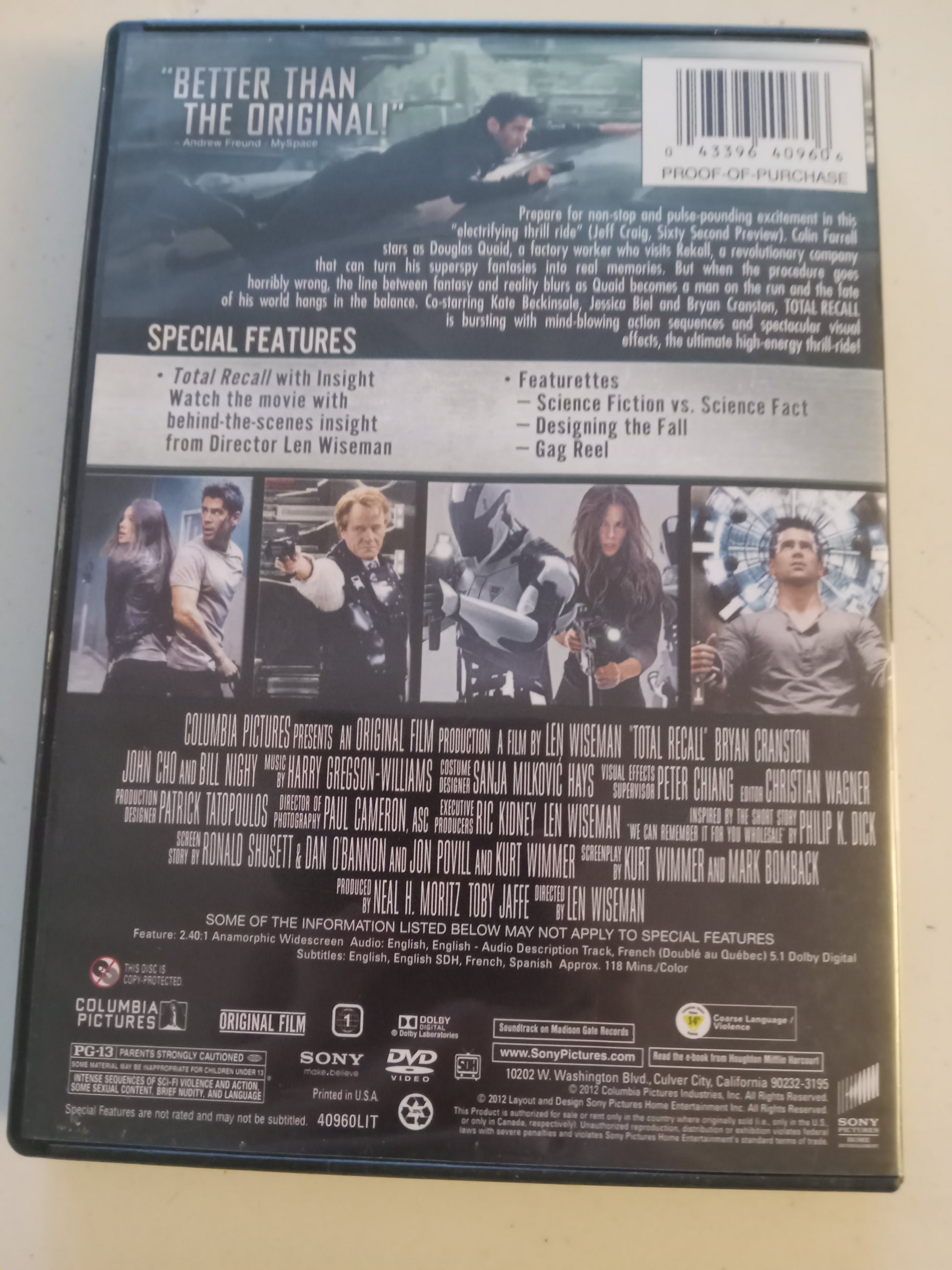 Total Recall Theatrical Edition, DVD Movie, Colin Farrell Widescreen, Rated PG-13, USED