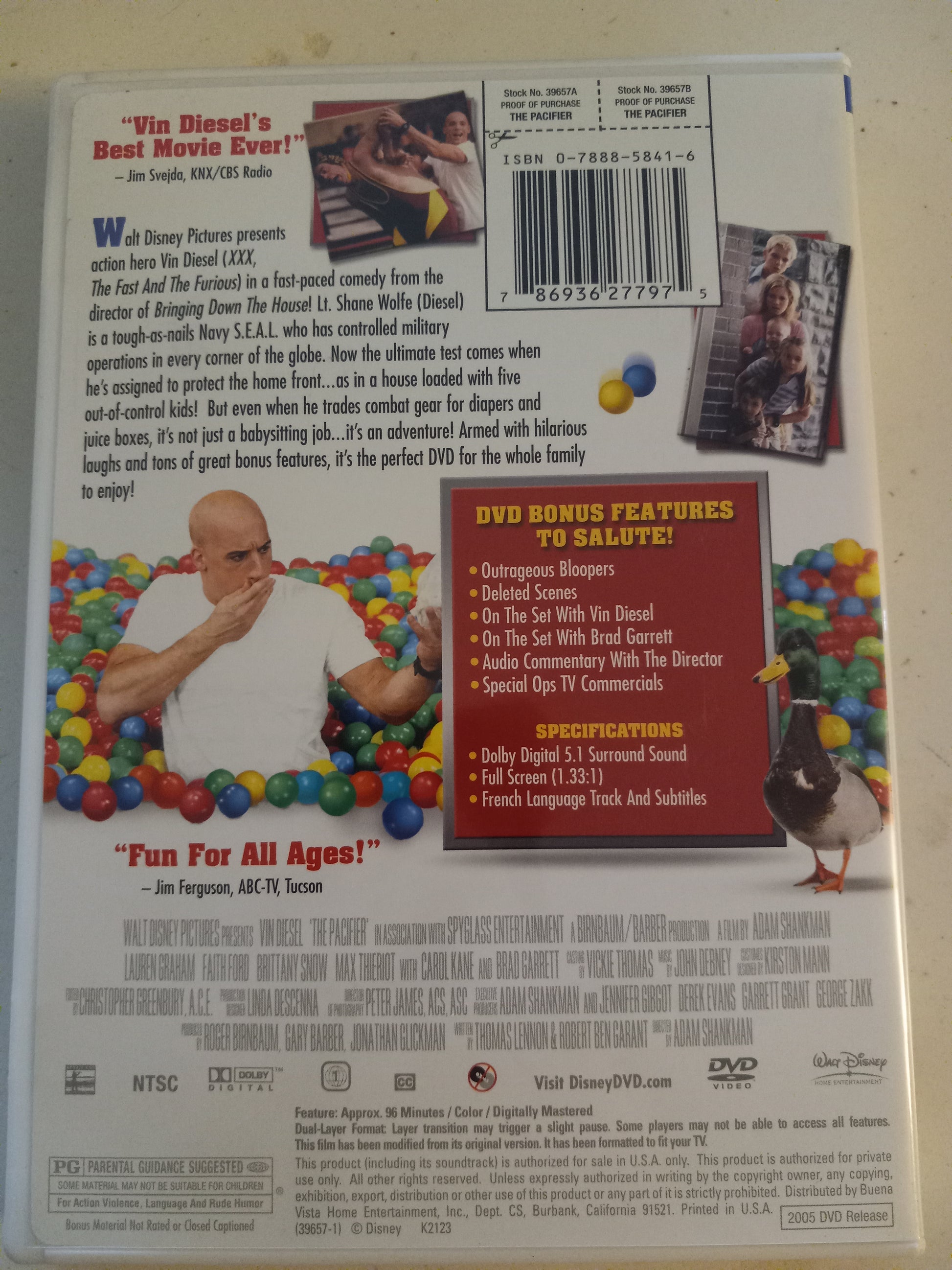 Vin Diesel is The Pacifier, DVD Movie, Fullscreen, Rated PG, USED