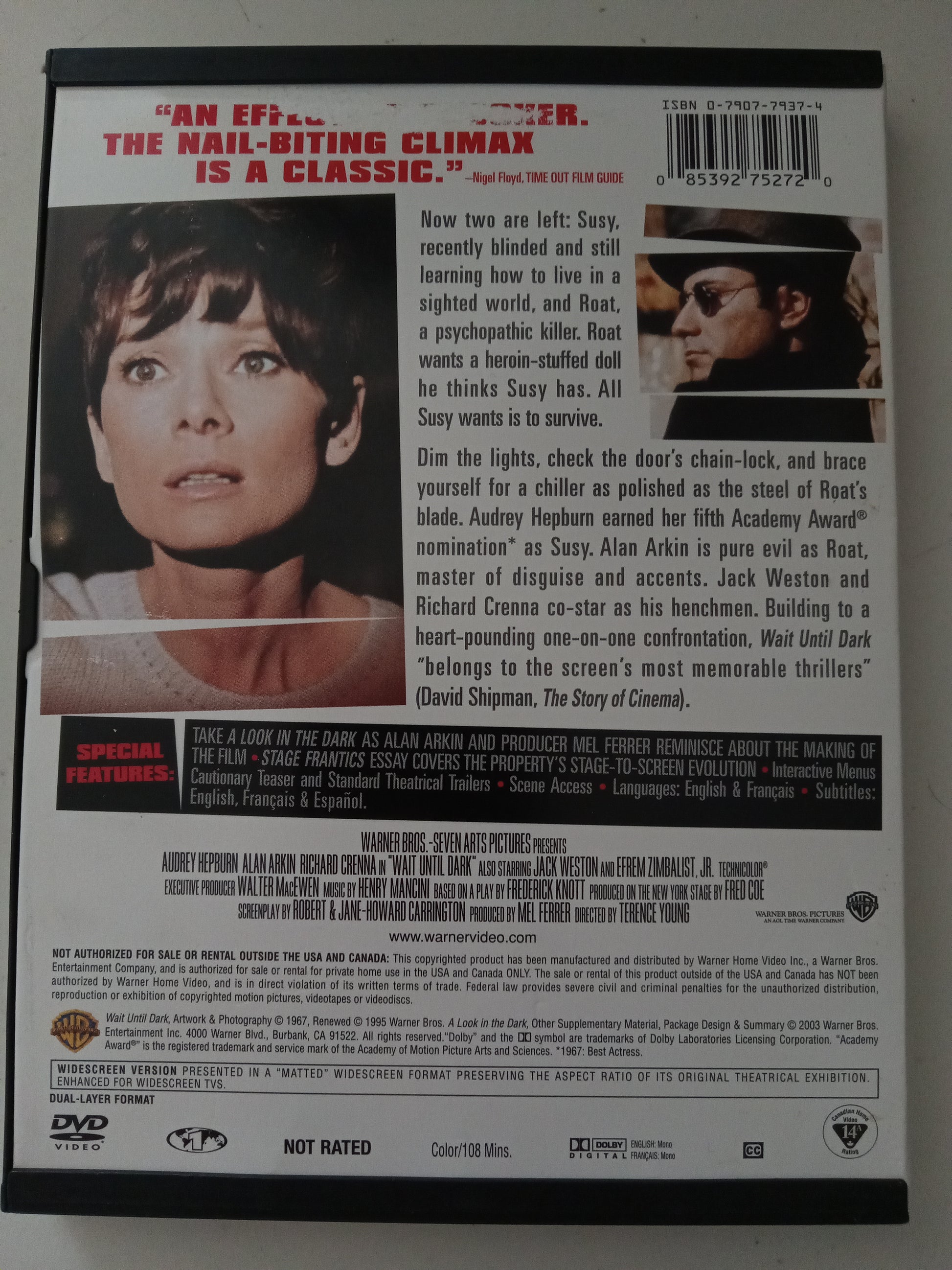 Wait Until Dark, The blinds moving up and down, the squeaking shoes, and then the knife whistling past her ear. DVD Movie, Audrey Hepburn Widescreen, Not Rated, USED