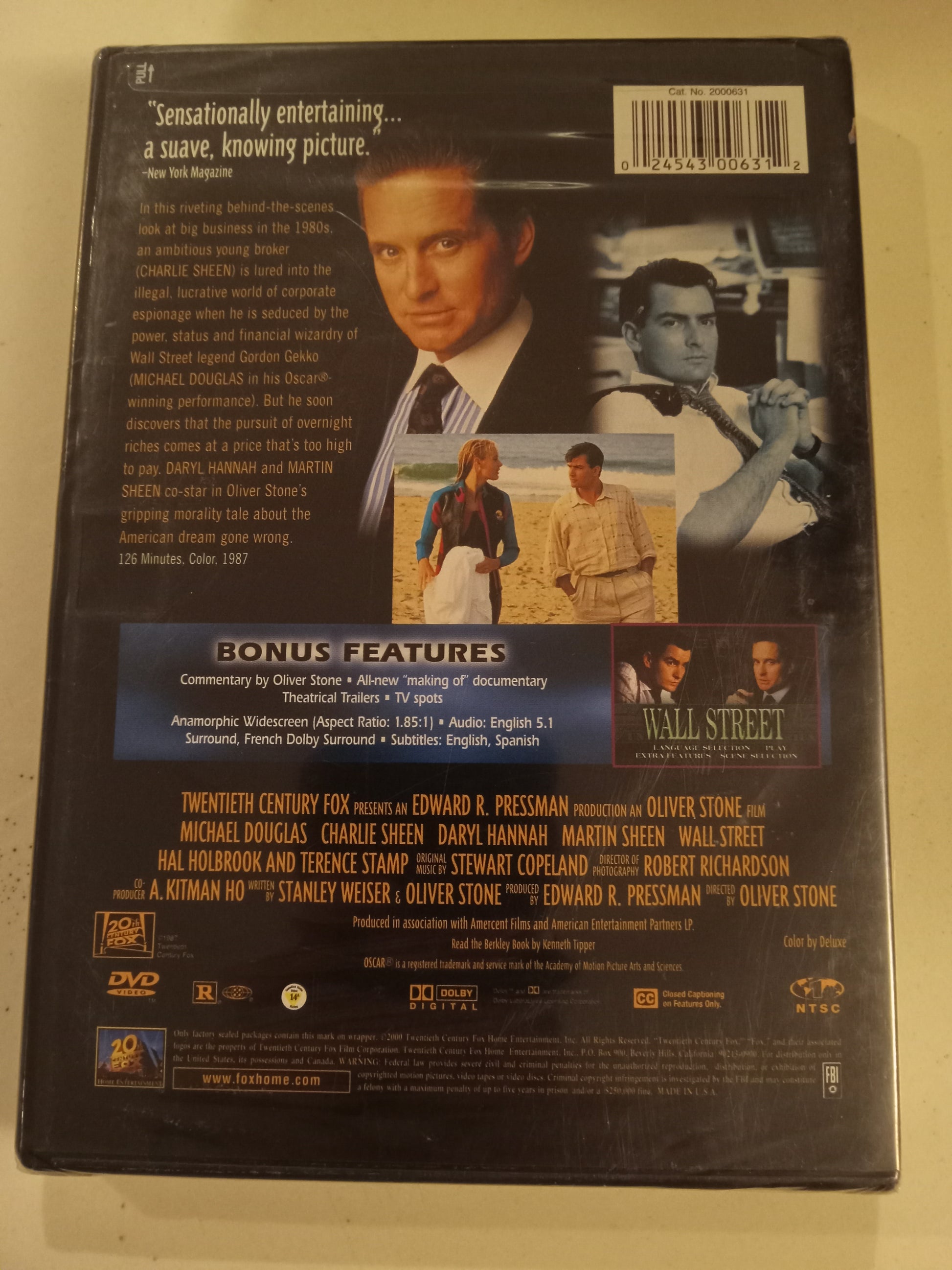 Wall Street, (Wallstreet) DVD Movie, Michael Douglas Widescreen, Rated R, NEW