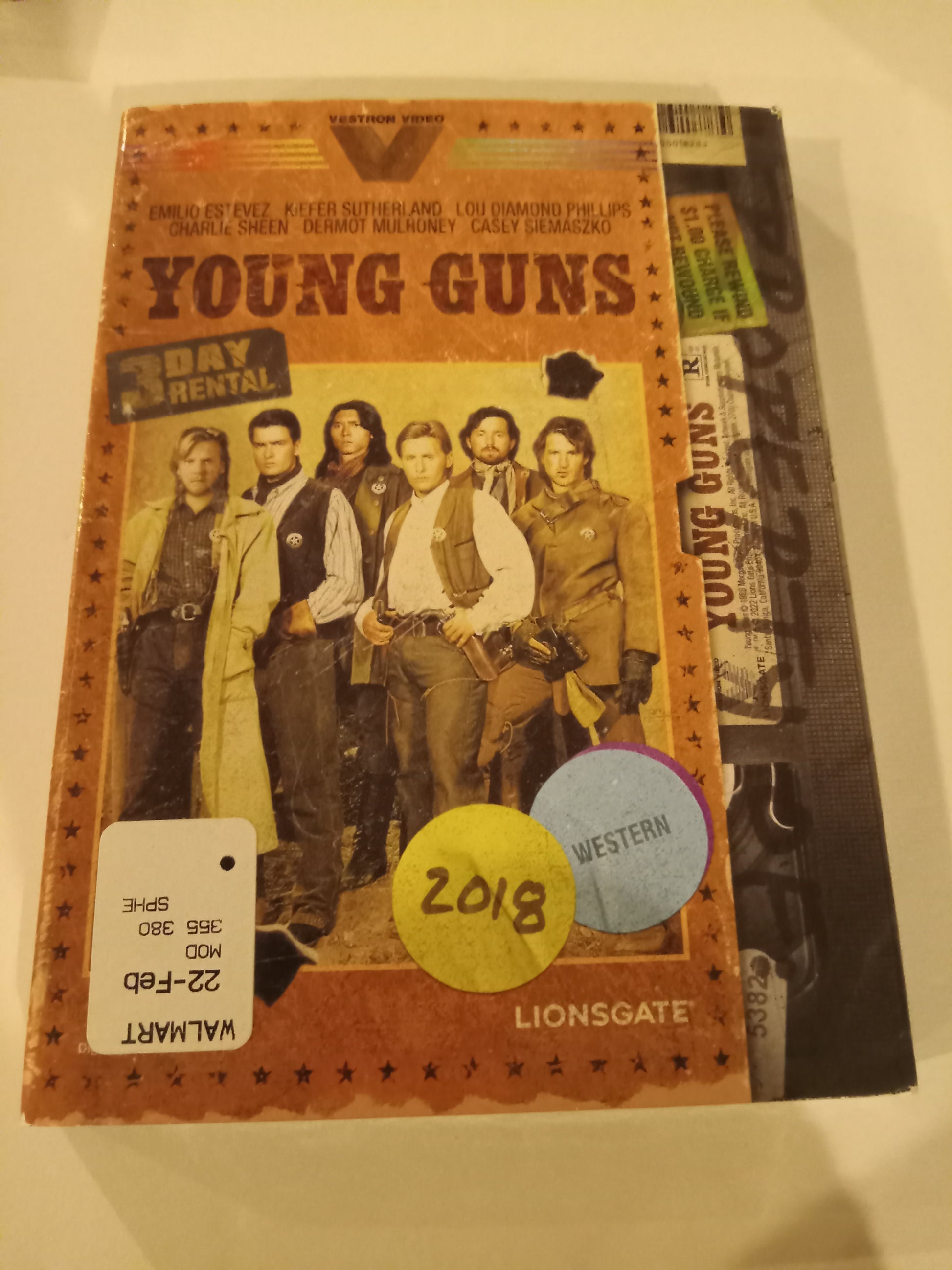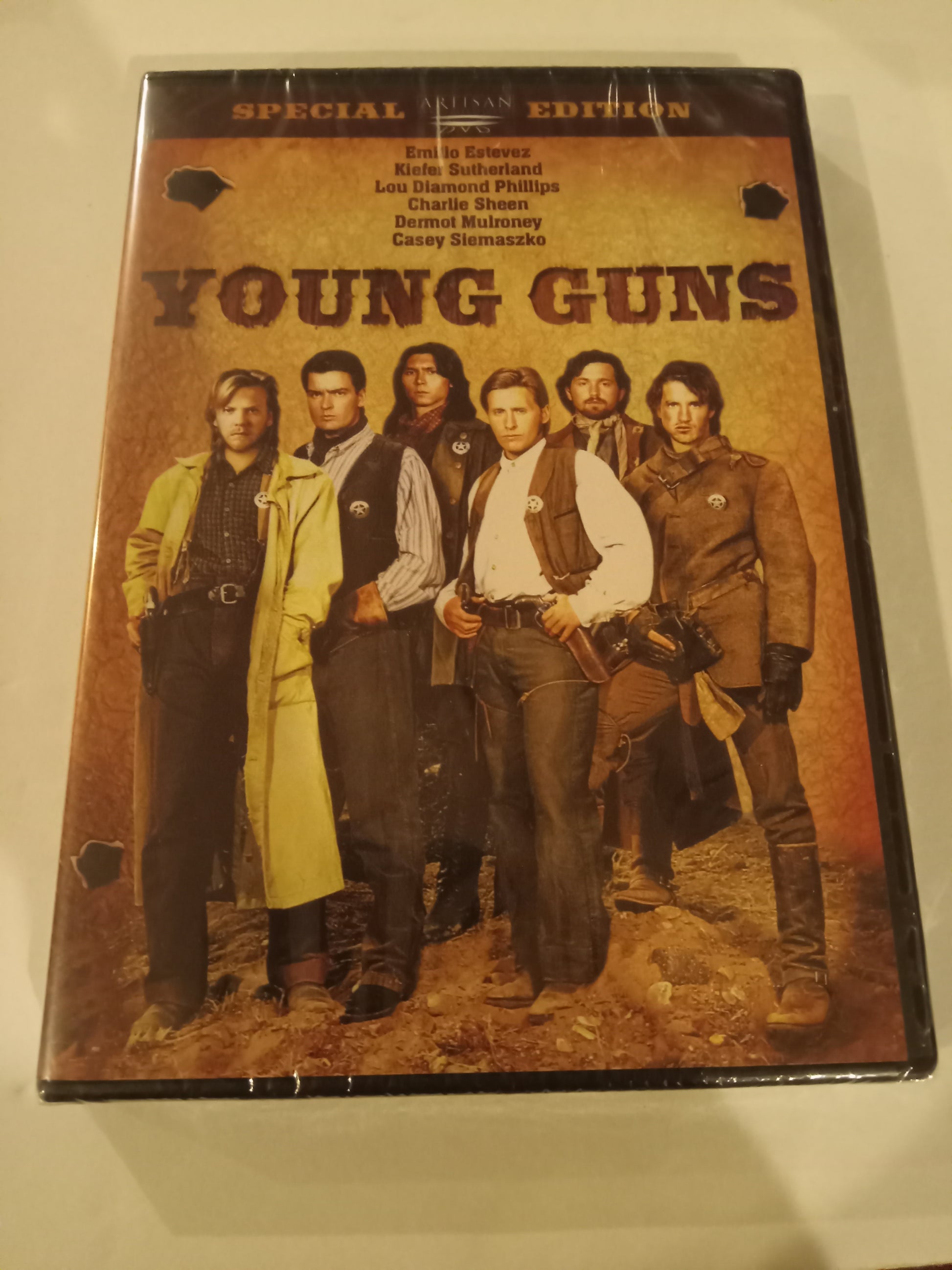 Young Guns, Exclusive Retro VHS Slip Cover/Special Ed. DVD Movie, Emilio Estevez Widescreen, Rated R, NEW or USED.